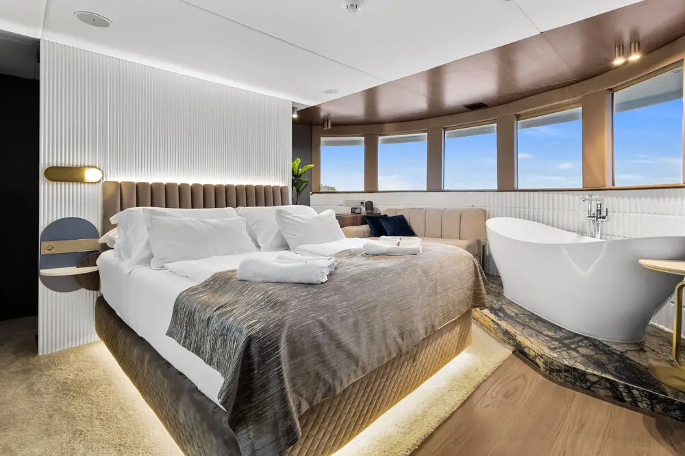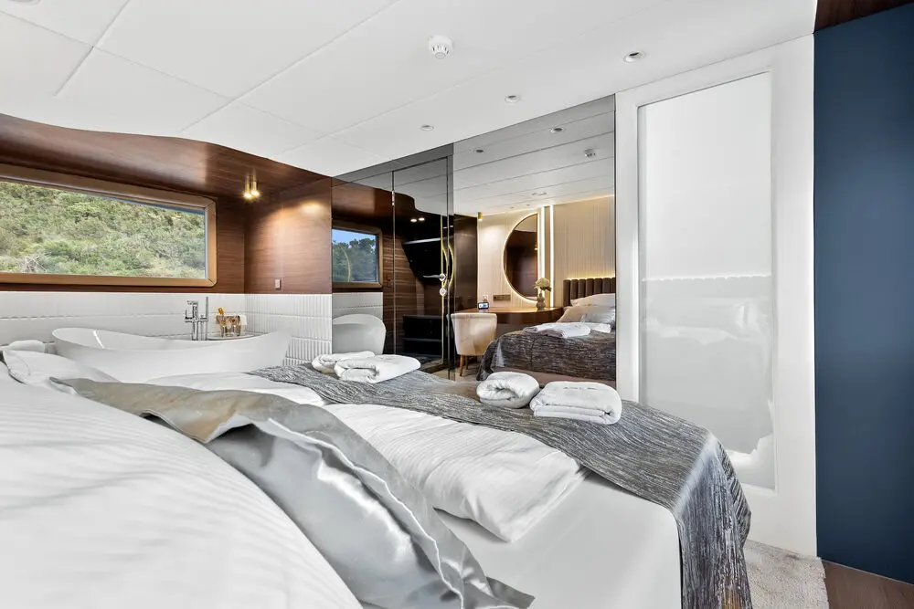 Bella distinguishes herself in the luxury yacht market with her extensive refit, expansive accommodations, and a wide range of amenities that set her apart from other yachts in the region. Committed to sustainability, Bella adheres to strict environmental protocols, ensuring that her operations are conducted with utmost respect for the marine environment.