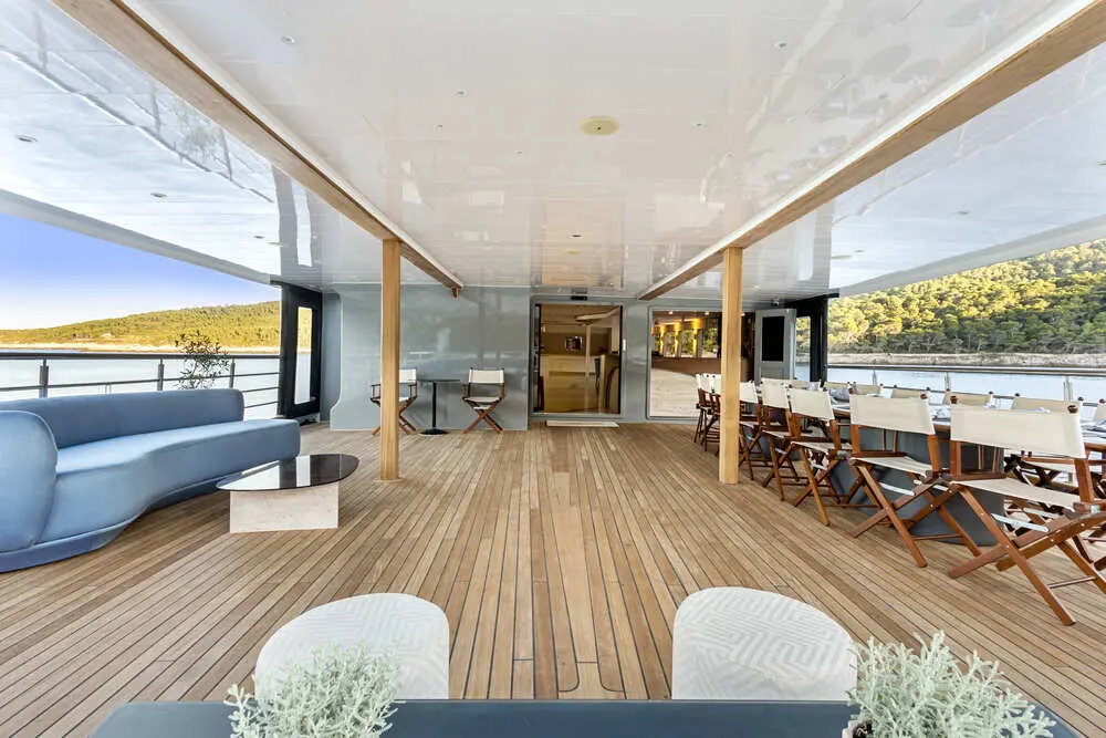 Motor Yacht Bella proudly flies the Croatian flag from her home base port in Croatia. Spanning a length of 47.90 meters with a beam of 8.50 meters and a draft of 3 meters, Bella was built in 2019 and recently refitted in 2024, ensuring the most contemporary features for guests. The yacht is operated by a skilled crew of nine who are dedicated to providing impeccable service.