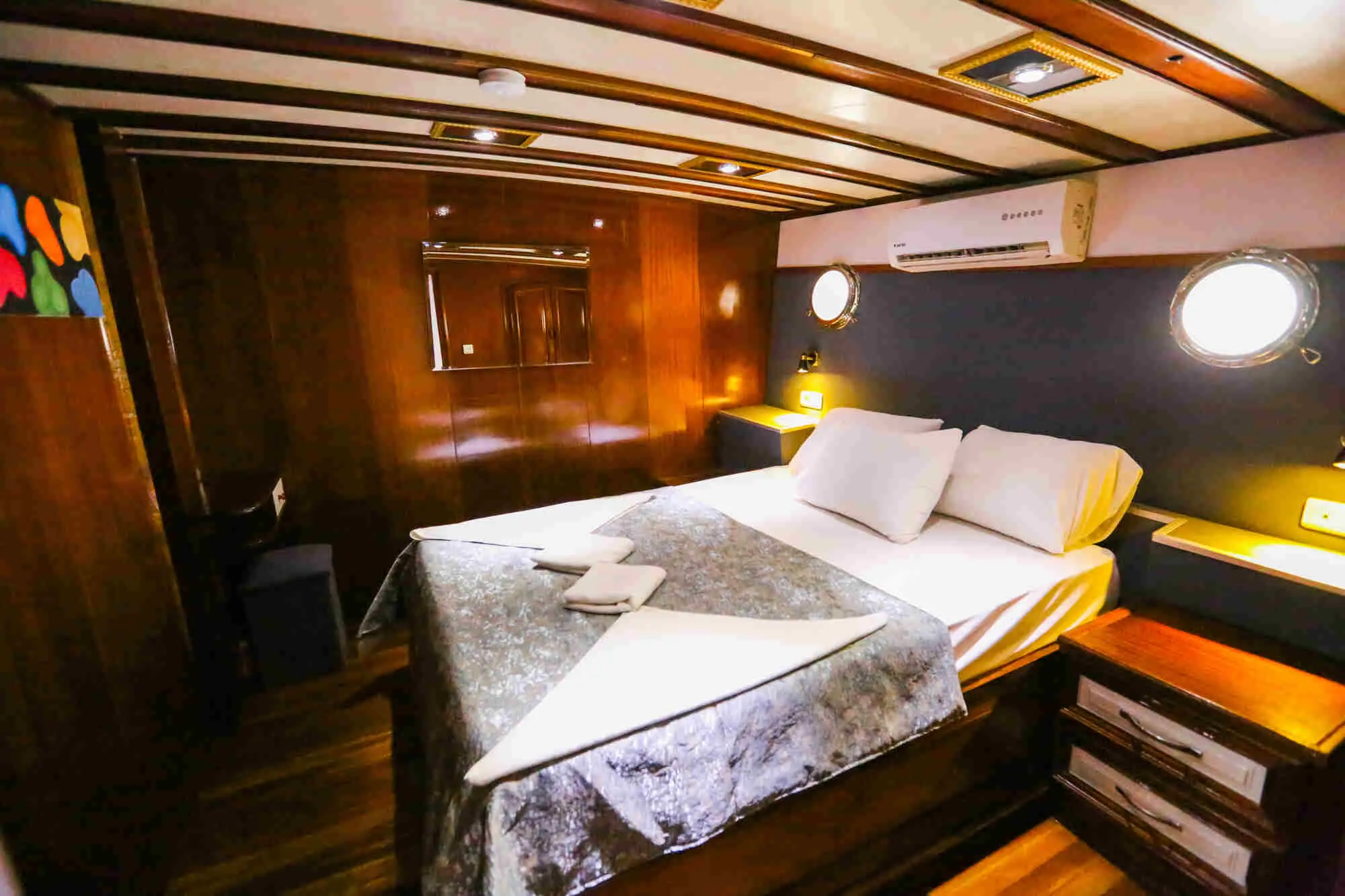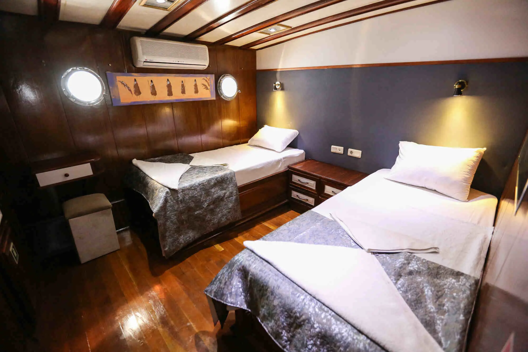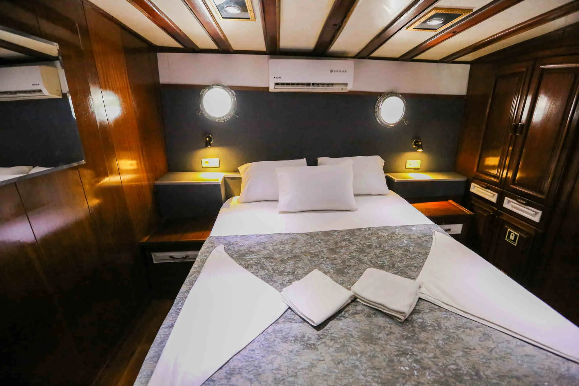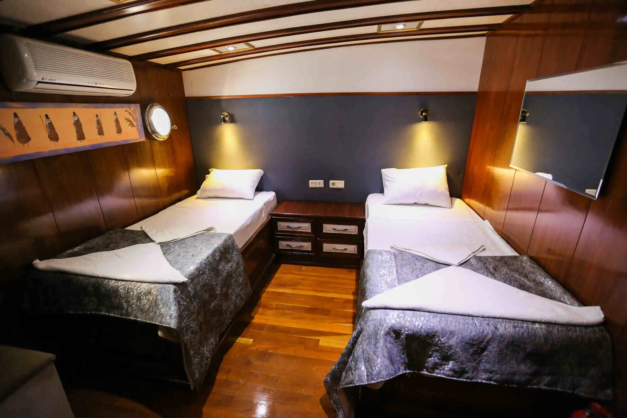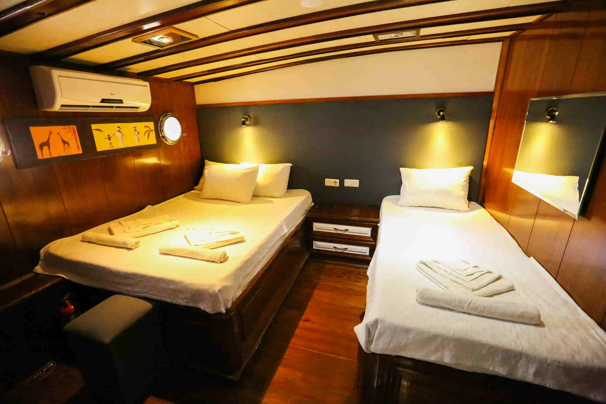 Gulet Holiday X features a variety of cabin types, including 6 Double, 2 Twin, and 2 Triple cabins, each equipped with modern amenities such as air conditioning, en-suite bathrooms with shower boxes, ensuring a comfortable stay for all guests. The gulet is manned by a dedicated crew of five, who are experienced in navigating the Mediterranean waters and committed to providing top-notch service, ensuring that every aspect of the journey is seamless and enjoyable.