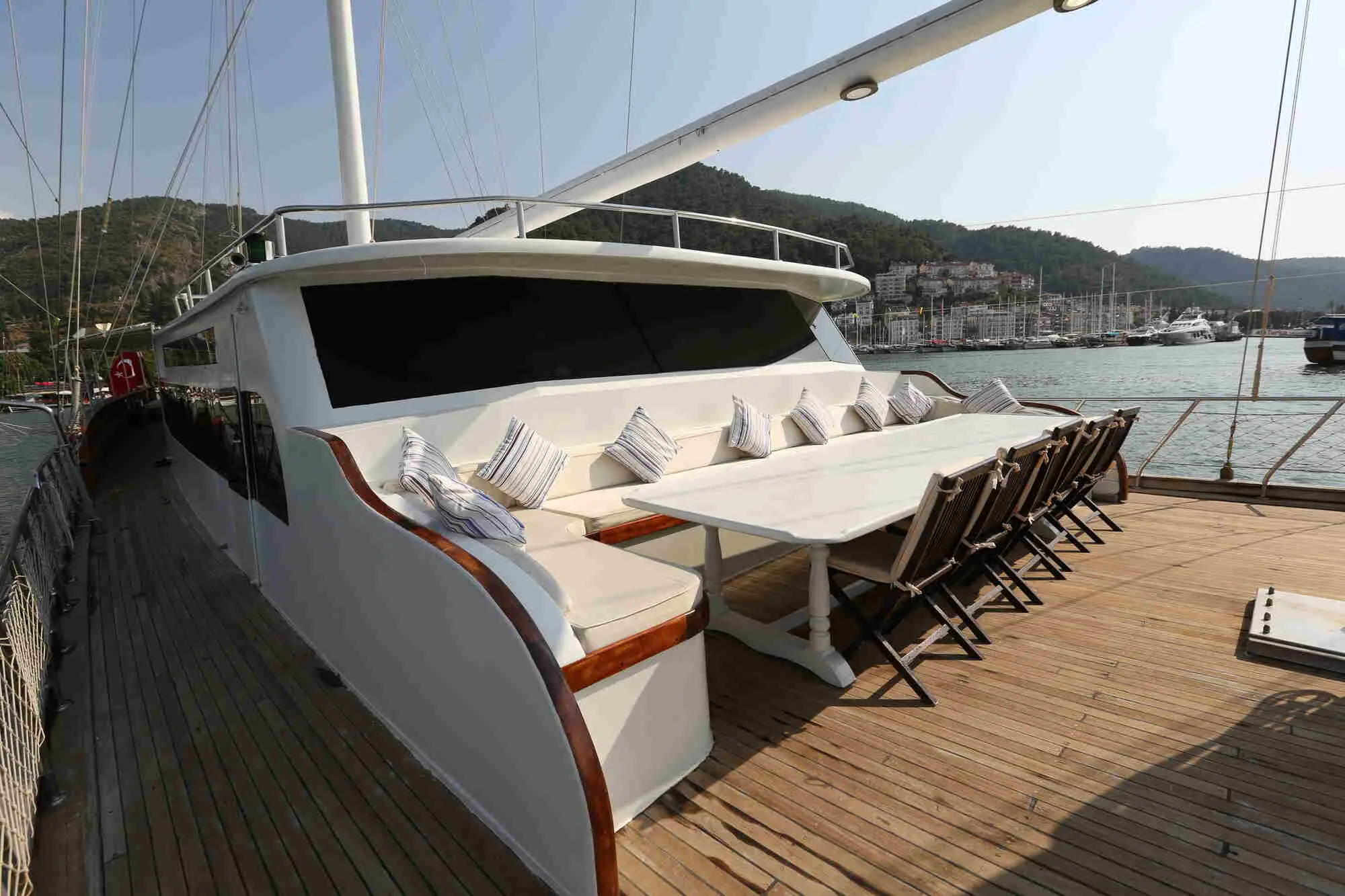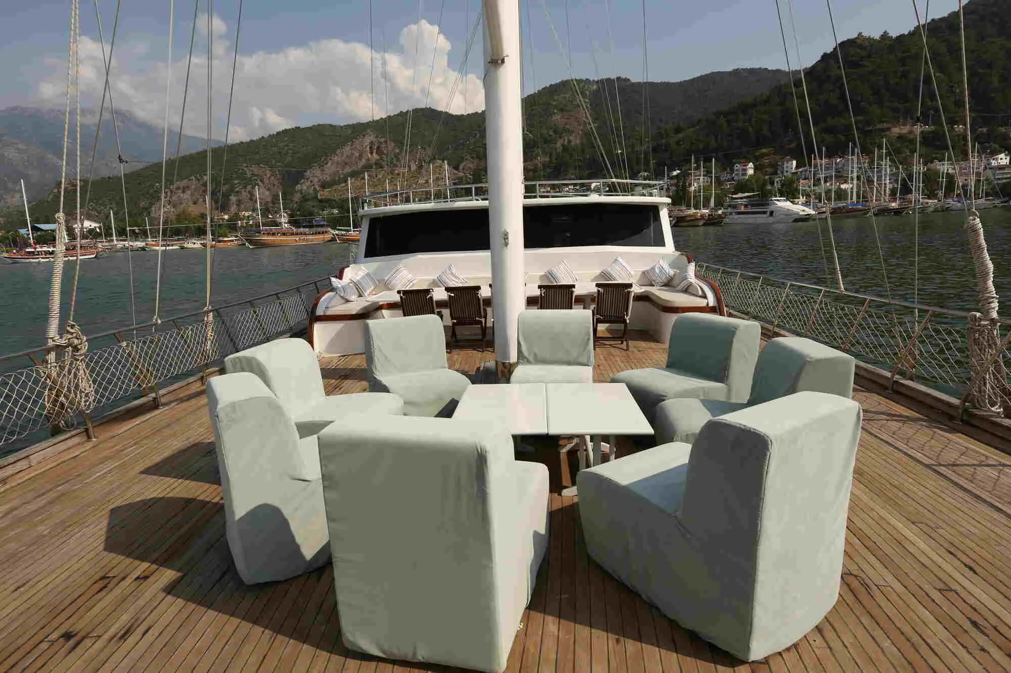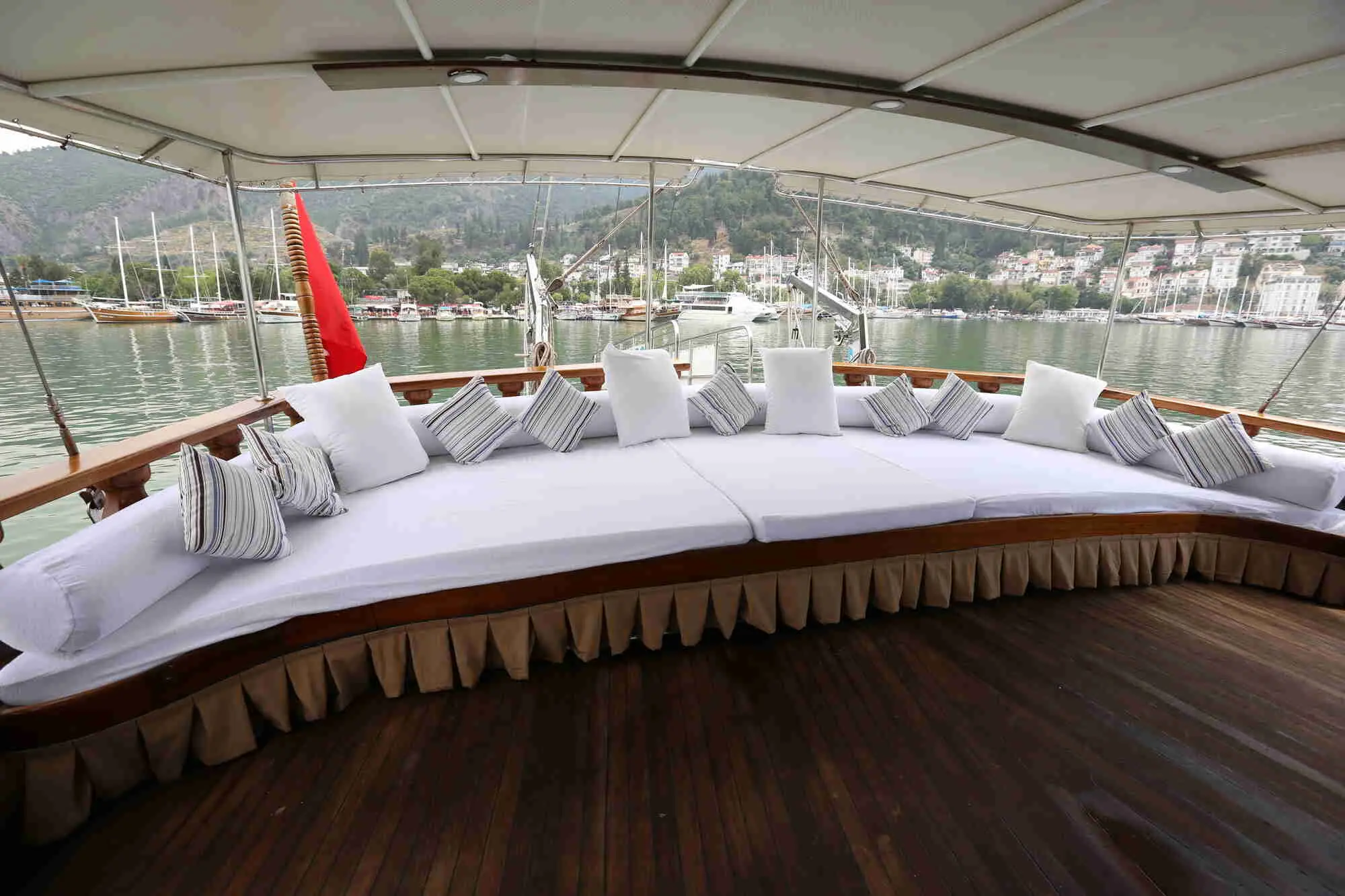 Gulet Holiday X stands as a prime example of luxurious sailing in Fethiye, combining traditional Turkish gulet charm with modern amenities. Designed for large groups, it accommodates up to 22 guests, making it ideal for family vacations or group outings.