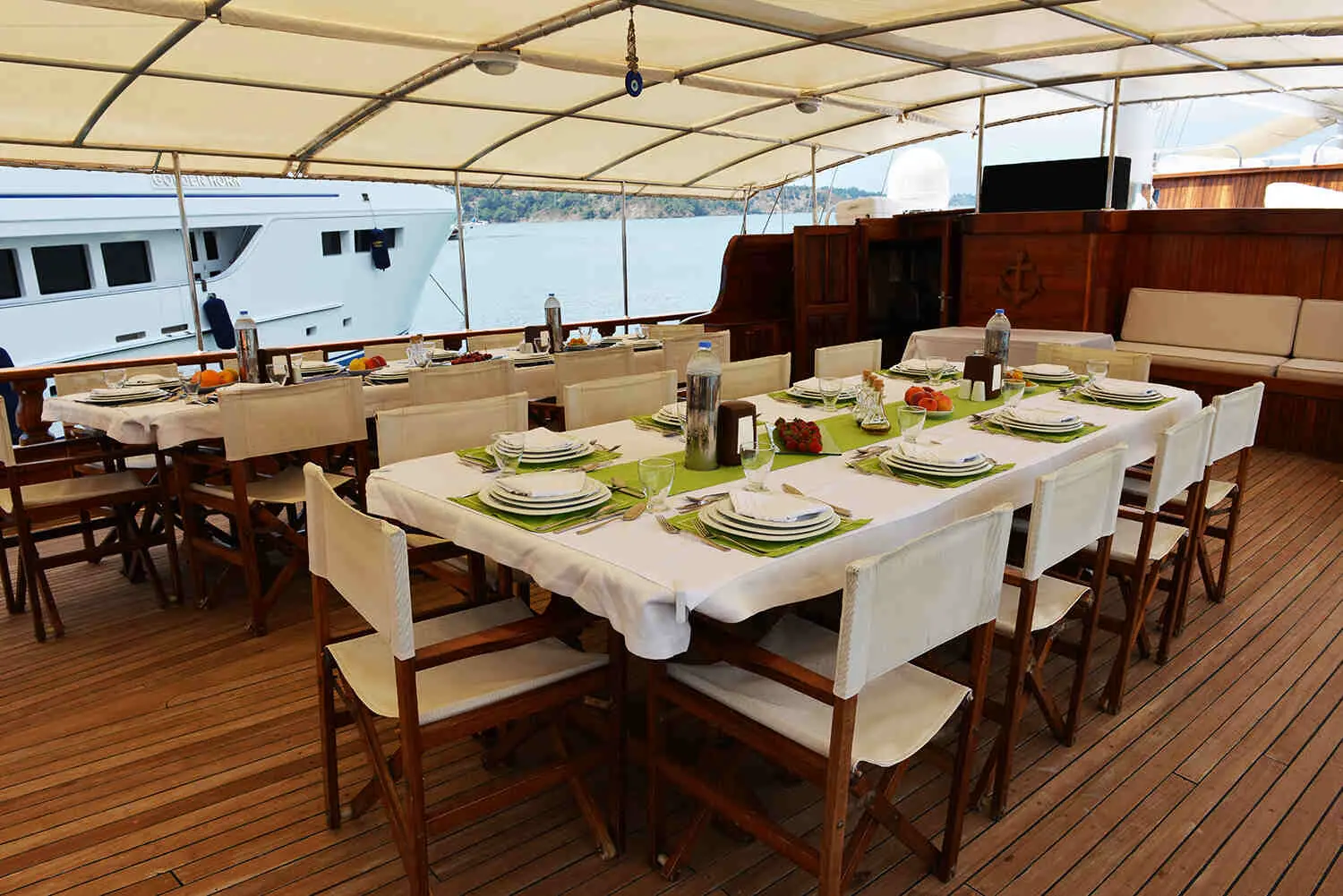Gulet Holiday X is an excellent choice for hosting special events or celebrations, providing tailored services to accommodate any specific needs or preferences for private charters. Equipped with the latest safety and navigational tools, including radar, GPS, and depth sounder, Gulet Holiday X ensures a safe cruising experience under the guidance of its skilled crew.
