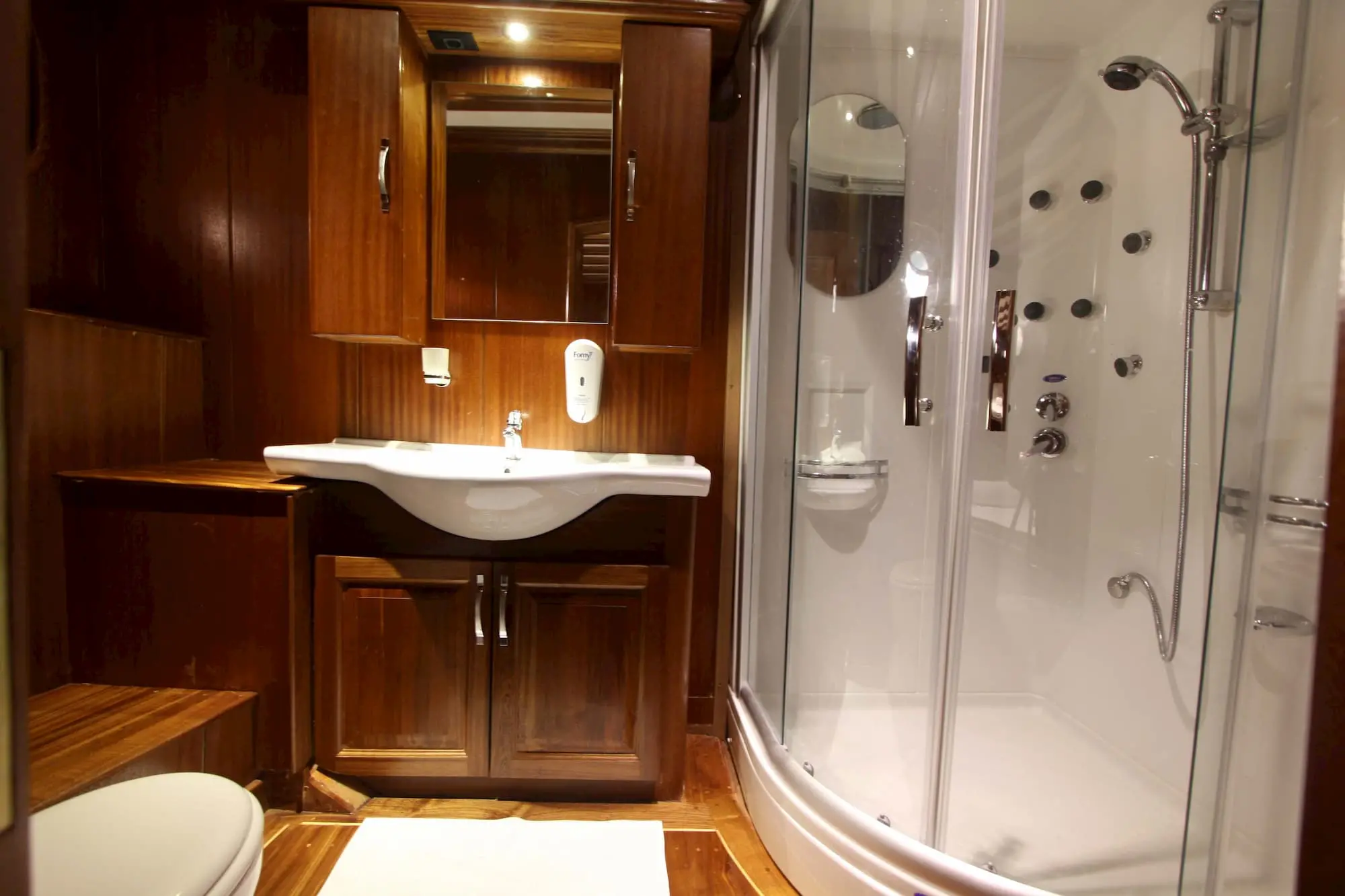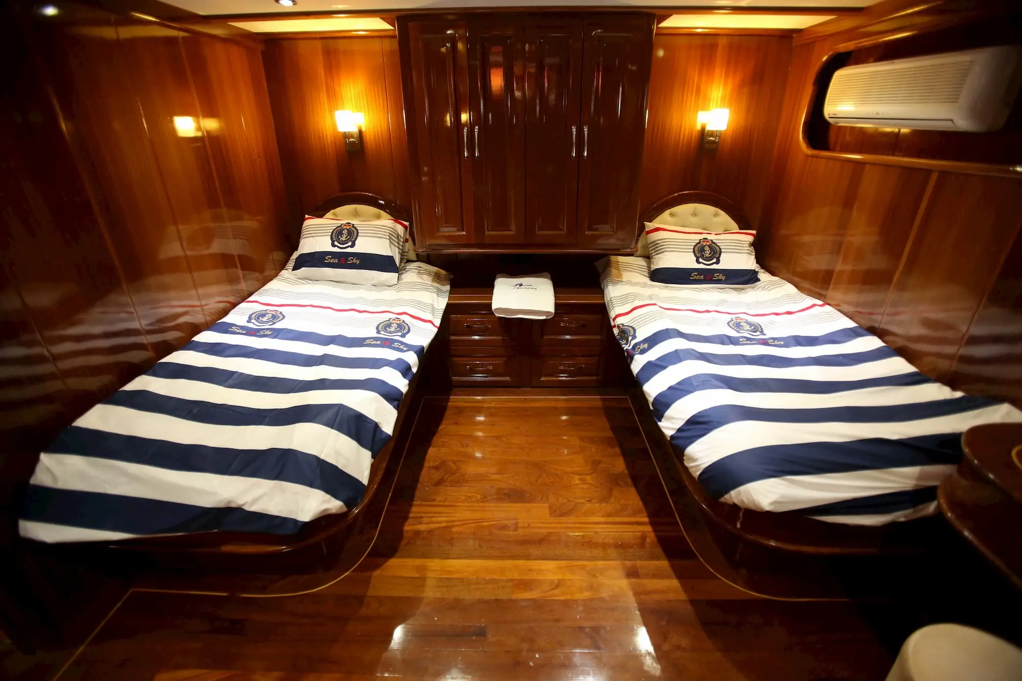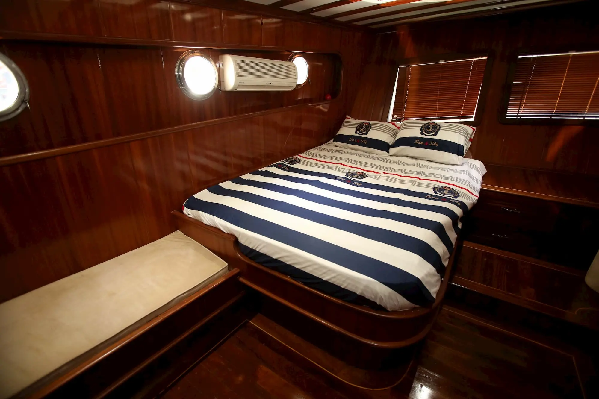 Gulet Semercioglu IV features a total of 10 cabins, including 8 Double and 2 Twin, all equipped with modern amenities such as air conditioning, en-suite bathrooms, and plush interiors, ensuring a comfortable stay for all guests. A professional crew of five, skilled in navigation and hospitality, is dedicated to providing top-tier service, ensuring every aspect of the journey is seamless and every guest need is met with attention and care.