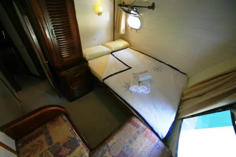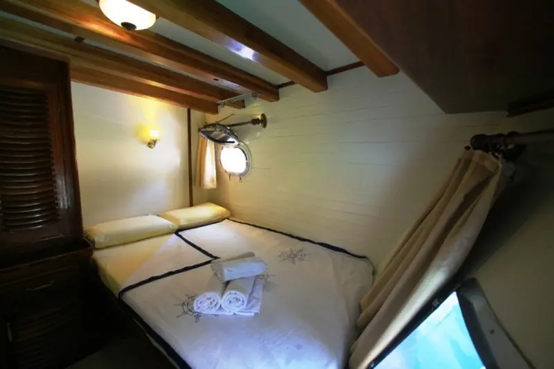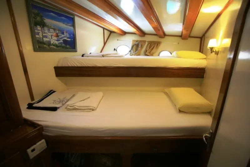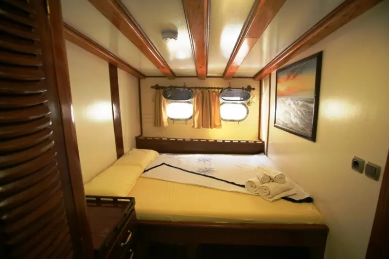 This impressive 41-meter motor sailor, refitted in 2011, features advanced maritime technologies and spacious accommodations. Powered by a 550 hp CAT engine, it ensures a smooth sailing experience at a cruising speed of 12 knots. Gulet Aegean Clipper features a variety of cabin types including 1 Master, 4 Double, and 6 Twin cabins, all equipped with modern amenities like air conditioning and private bathrooms, ensuring comfort for all guests.