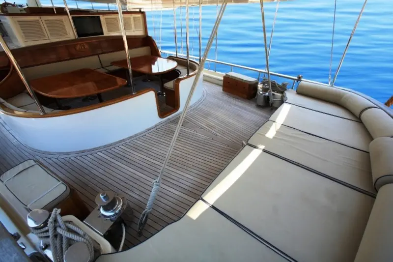 A dedicated crew of five specializes in personalized service, focusing on creating a bespoke and luxurious experience that caters to the needs and preferences of each guest. The yacht is equipped with a range of entertainment options including a TV in the salon, a music system, and wireless internet. For adventure lovers, there are water sports facilities such as canoes, windsurfs, and water skis.