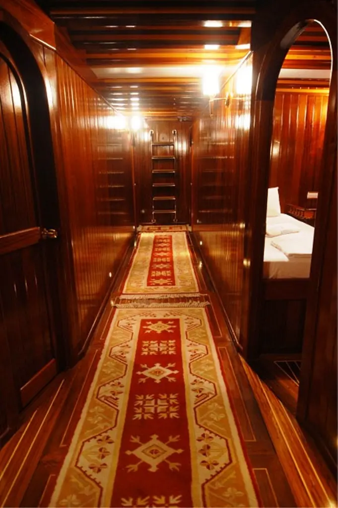 At 55 meters long with a beam of 8.70 meters, Gulet Bahriyeli C combines stability and spaciousness, powered by twin 600 hp Volvo engines. It is equipped with advanced navigation systems including radar, GPS, and VHF radio, ensuring safe and smooth cruising.