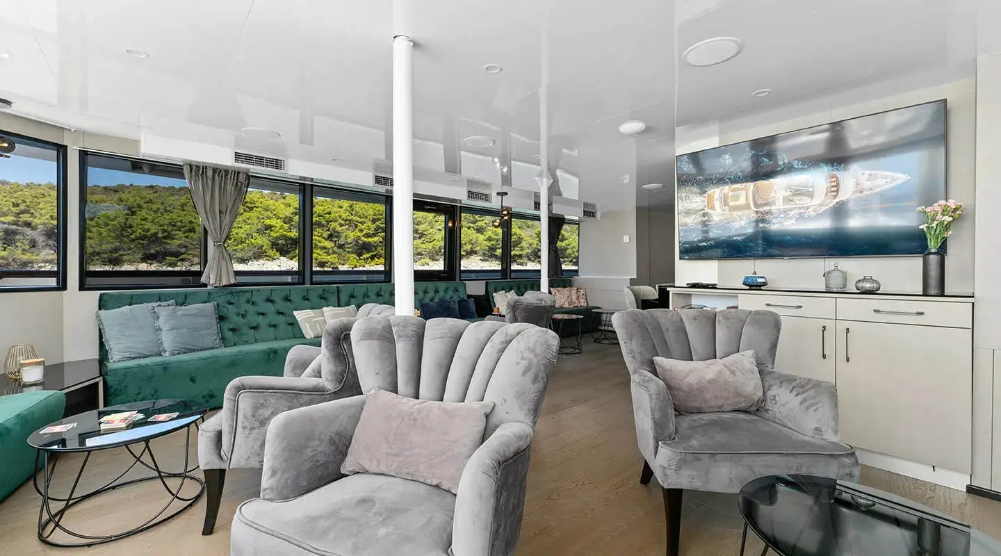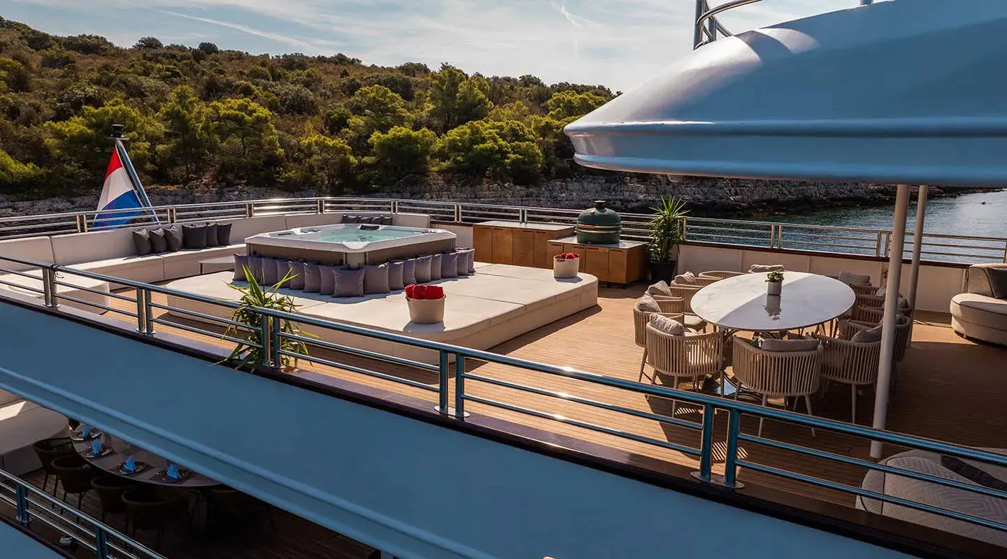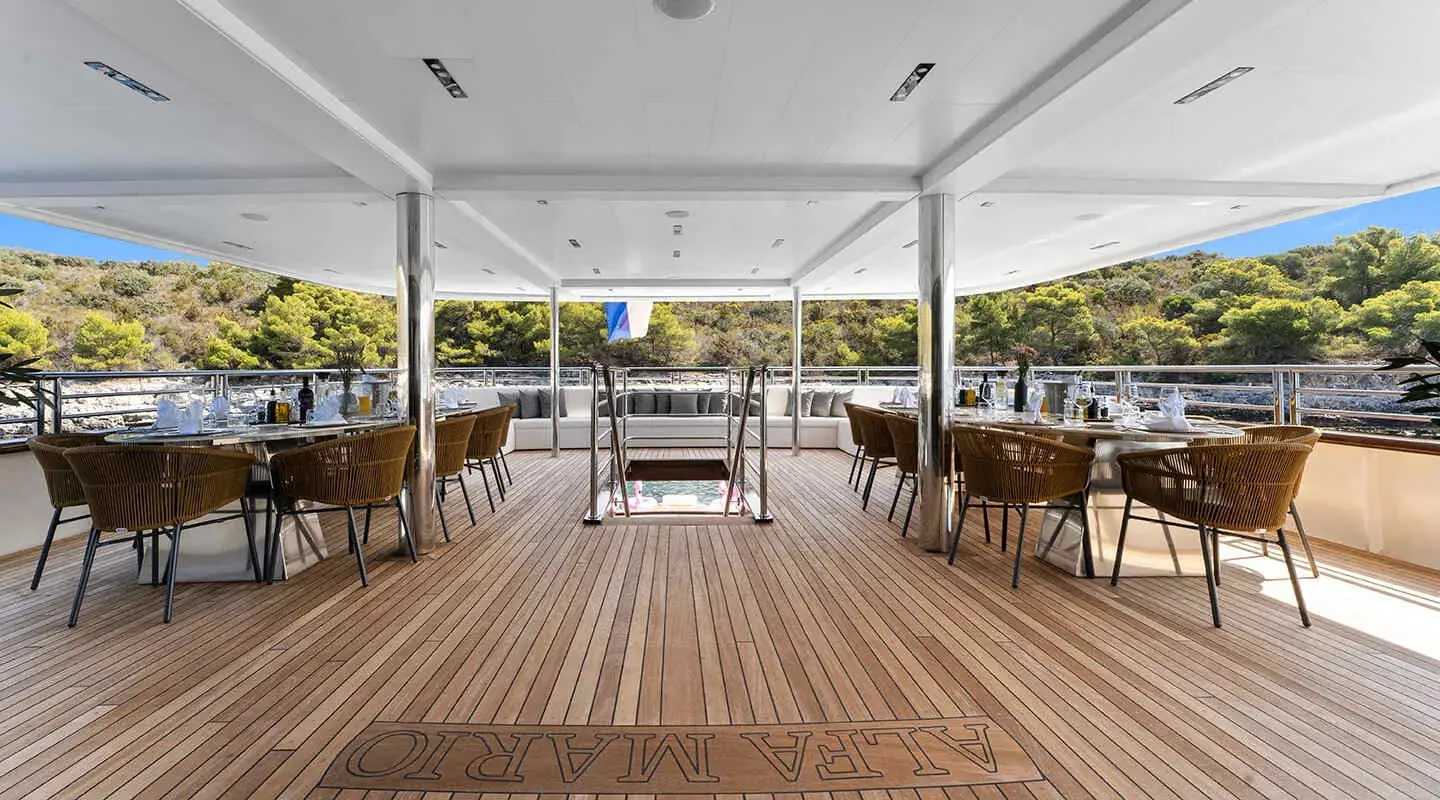 Motor Yacht Alfa Mario stands out as a prime choice for luxury cruising in Croatia, tailored for groups up to 32 passengers. This yacht spans a length of 52 meters and has a beam of 8.60 meters, offering a spacious and opulent setting for its guests. Built in 2021 and recently refitted in 2024, it boasts modern facilities and a contemporary design.