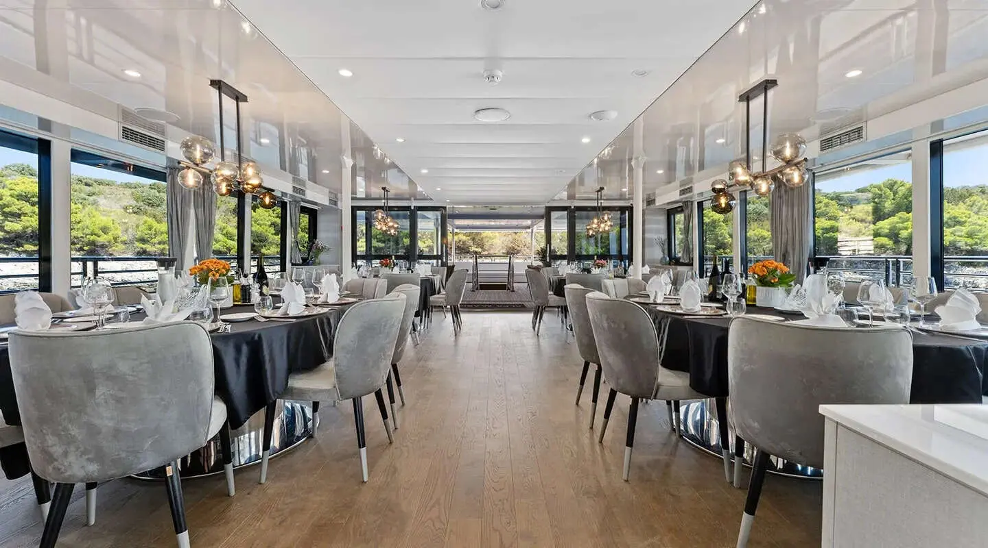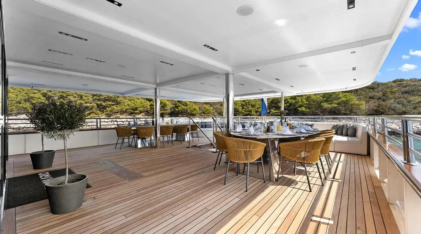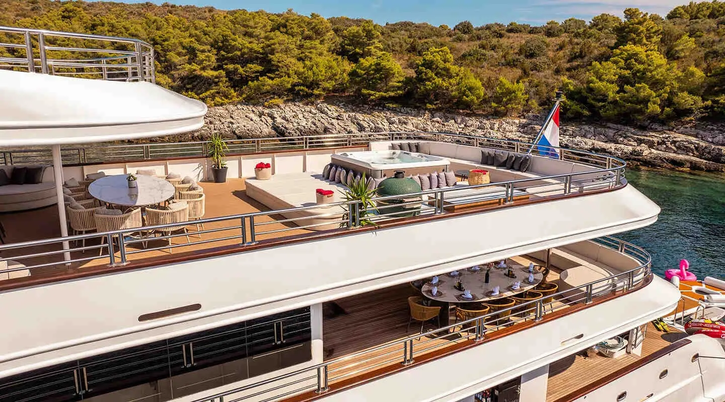 Motor Yacht Alfa Mario stands out as a prime choice for luxury cruising in Croatia, tailored for groups up to 32 passengers. This yacht spans a length of 52 meters and has a beam of 8.60 meters, offering a spacious and opulent setting for its guests. Built in 2021 and recently refitted in 2024, it boasts modern facilities and a contemporary design.