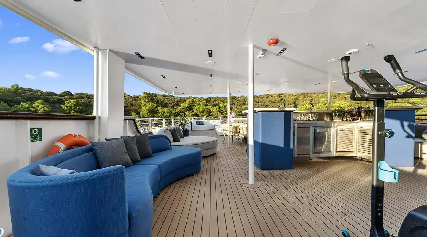 The Alfa Mario is not just about comfortable lodging; it's also packed with a range of entertainment options and luxurious amenities that are sure to make any voyage memorable. The yacht includes a swimming pool and a sauna, perfect for relaxation. For those looking to stay active, there's a gym on board. The deck features a jacuzzi, providing a wonderful spot to relax while enjoying the sea breeze.