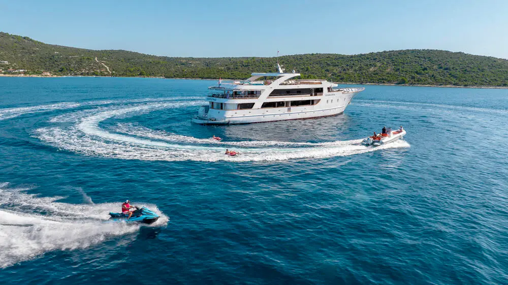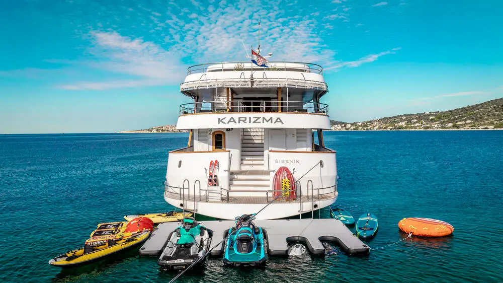 Motor Yacht Karizma provides a versatile platform for various activities, from serene family outings to exhilarating water sports adventures. Guests can customize their itinerary to include visits to secluded bays, vibrant towns, and historical sites, making each journey uniquely memorable.
