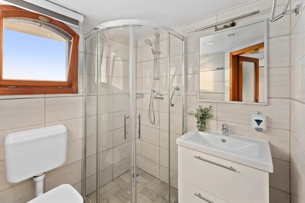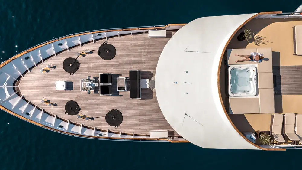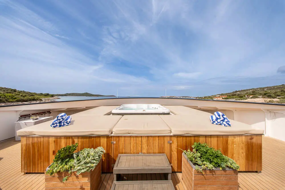 Karizma offers an array of onboard amenities designed to enhance your leisure and entertainment. The deck features a jacuzzi, perfect for relaxation while you take in the stunning sea views. For entertainment, the saloon offers a TV and access to deck showers, while the adventurous can enjoy water sports with two jet-skis, two kayaks, and two Seabobs among other equipment.
