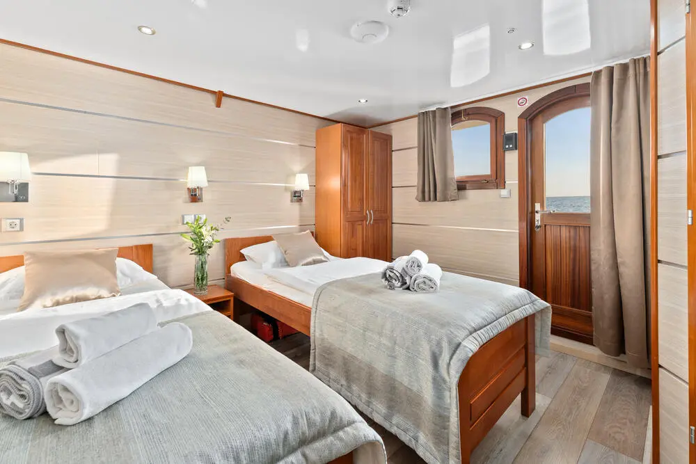 | Cabins: | 6 Double, 2 Triple, 4 Twin |
