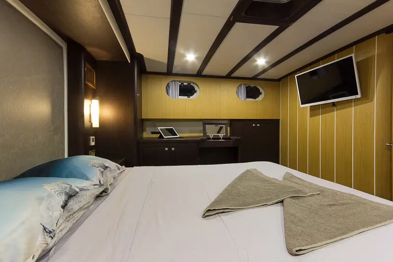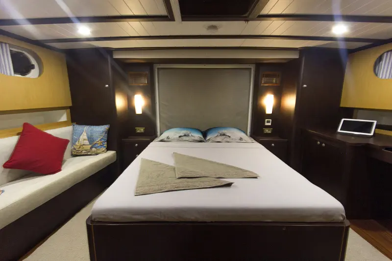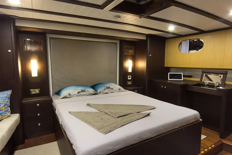 From the shower boxes in the bathrooms to the fully equipped indoor restaurant, every element onboard the Cenkaya is designed with your comfort in mind. The two-member crew of the Cenkaya Gulet are seasoned professionals, dedicated to ensuring that every aspect of your voyage is handled with expert care. Expect nothing less than exceptional service, from daily cabin upkeep to personalized culinary preparations, all tailored to enhance your cruising experience.