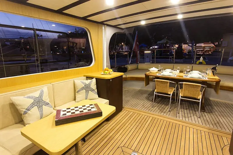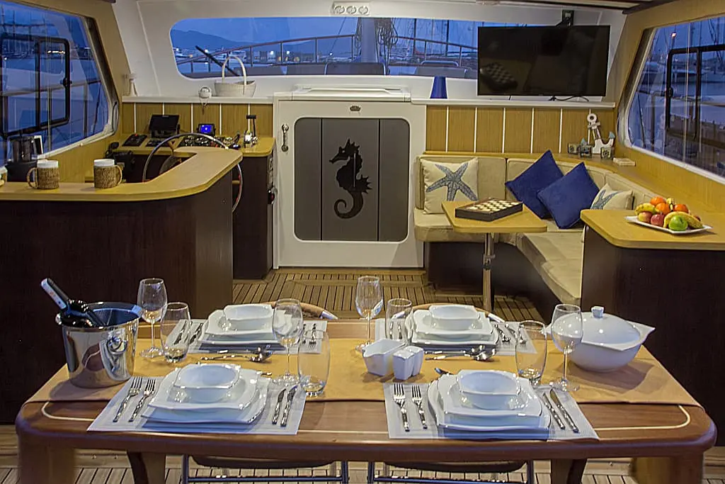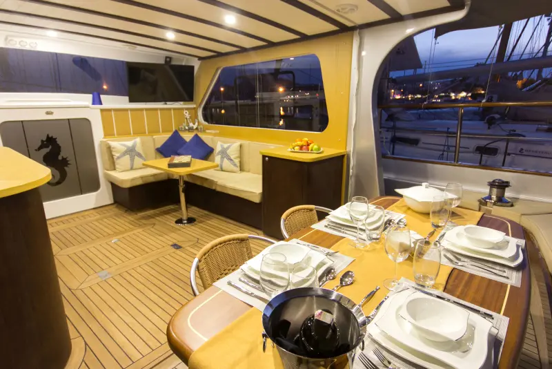 Savor gourmet meals prepared by your skilled crew in the indoor dining area or under the starlit sky on deck. Dietary needs are no obstacle; the crew is prepared to accommodate all preferences to ensure a delightful dining experience.