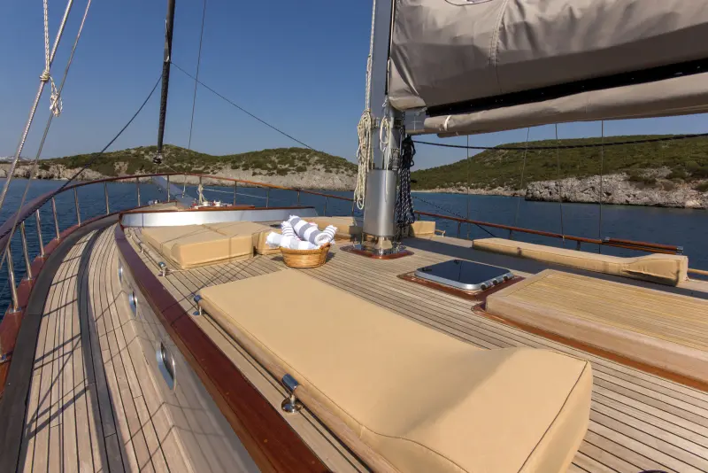 Explore the design and features that set the Cenkaya Gulet apart as a premier choice for travelers seeking luxury and comfort. The vessel's large size not only enhances comfort but also provides ample space for various leisure activities onboard, accommodating every guest's needs.