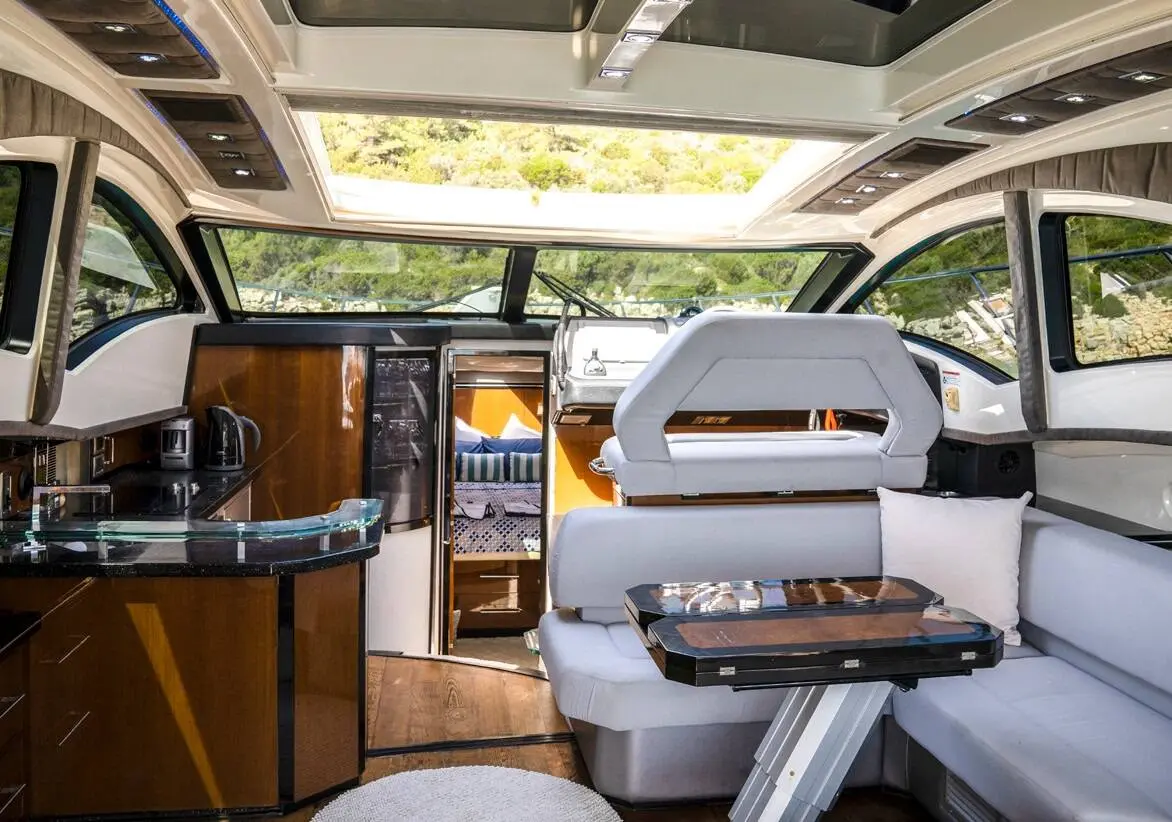 Never Give Up combines modern comforts with efficient performance, making it an ideal choice for exploring the enchanting waters of Bodrum and beyond. Its recent refit in 2022 ensures that all facilities are state-of-the-art. With a length of 12.49 meters and a beam of 4.20 meters, Never Give Up offers ample space and stability, ensuring comfort even at sea. Equipped with powerful twin Volvo Penta IPS 600 engines at 435 HP each, the yacht promises an exhilarating cruising experience.