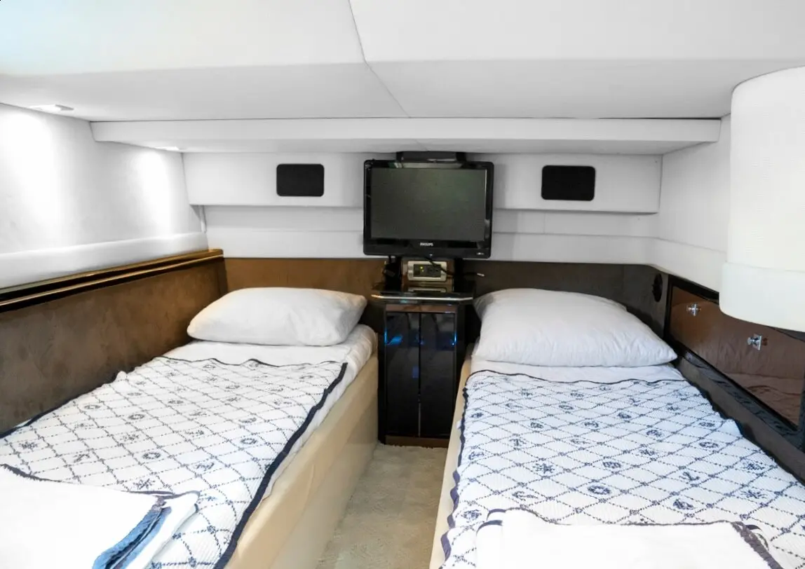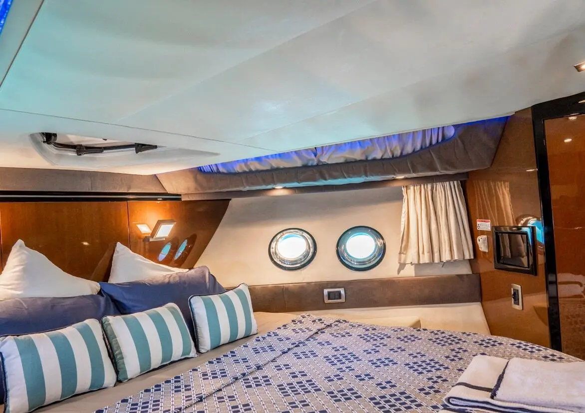 The yacht features one master and one twin cabin, both designed with attention to detail and equipped with private bathroom facilities to provide privacy and convenience. From air-conditioned interiors to versatile outdoor seating areas, Never Give Up ensures every aspect of your journey is catered to. Guests can enjoy modern amenities such as Internet, Wi-Fi, and entertainment systems throughout their stay.