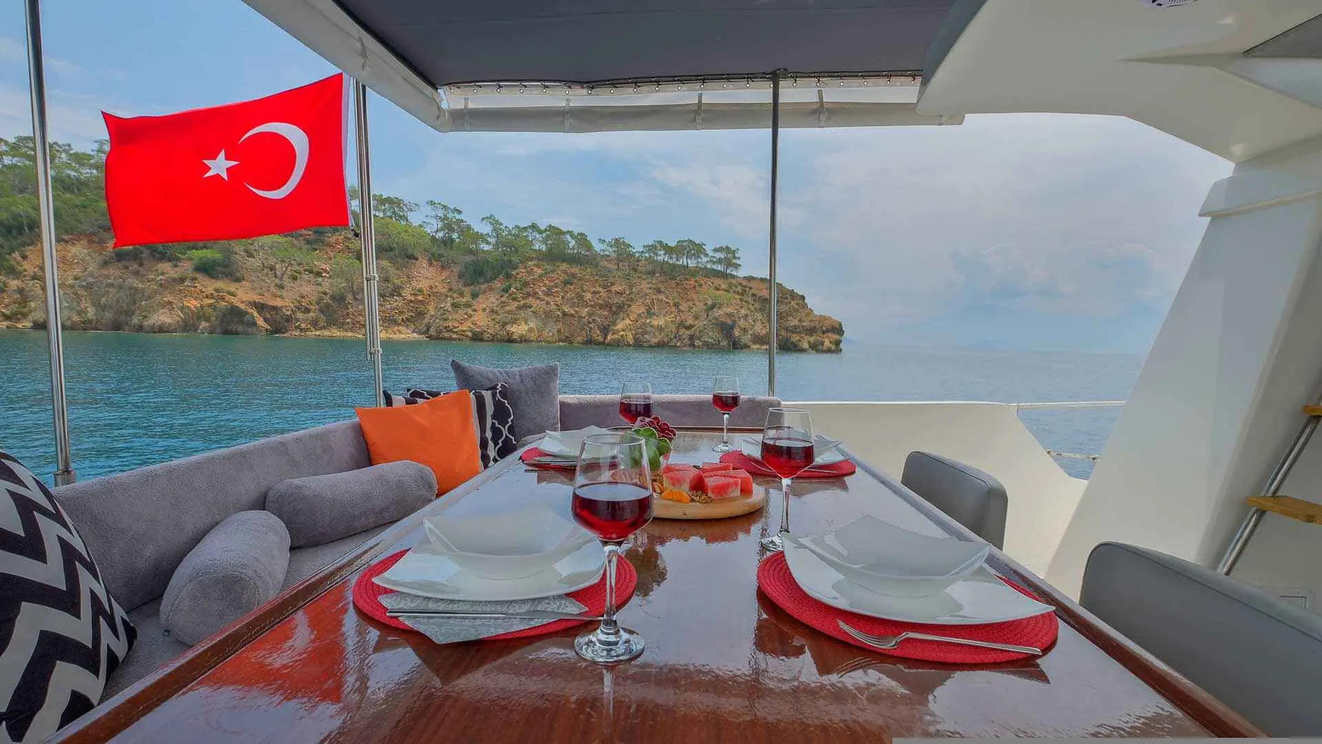 The best time to enjoy a yacht trip aboard Ada Kuzey is between late spring and early autumn, when the Mediterranean climate is most pleasant, offering warm days and cool evenings.
