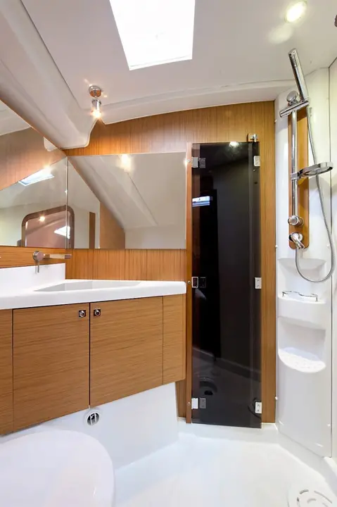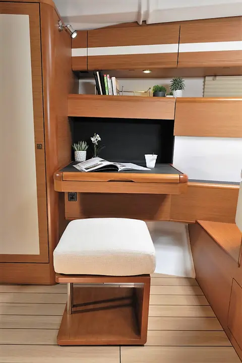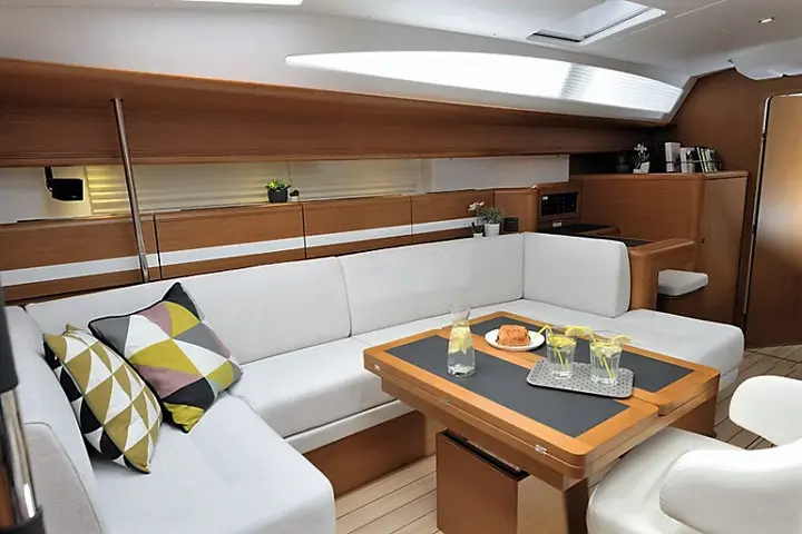 Aybalam offers luxurious accommodations with one master and two double cabins, each fitted with electric toilets and shower boxes. The yacht’s air conditioning system extends to both the saloon and cabins, providing comfort during the warm Mediterranean summers.