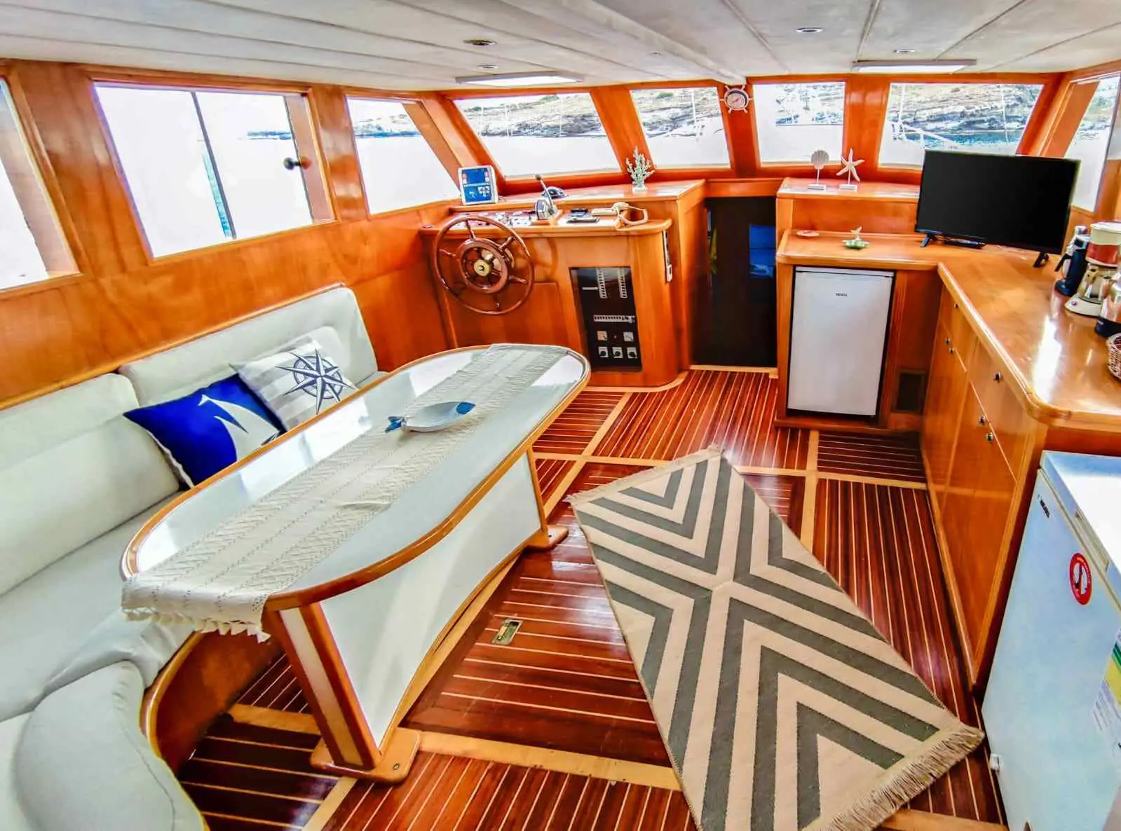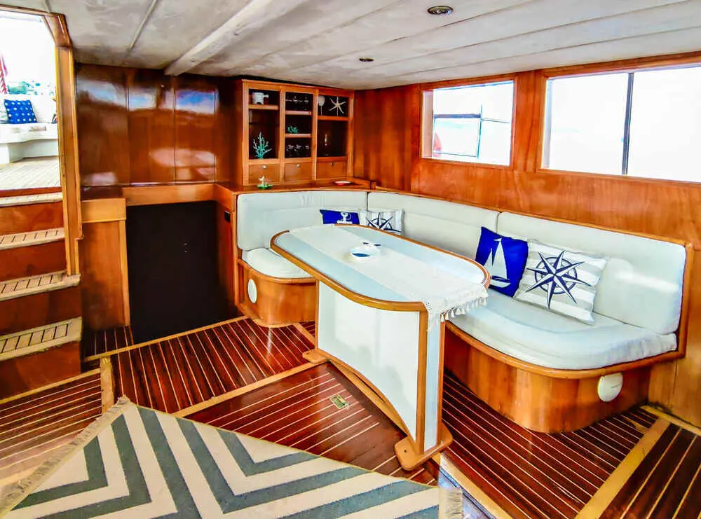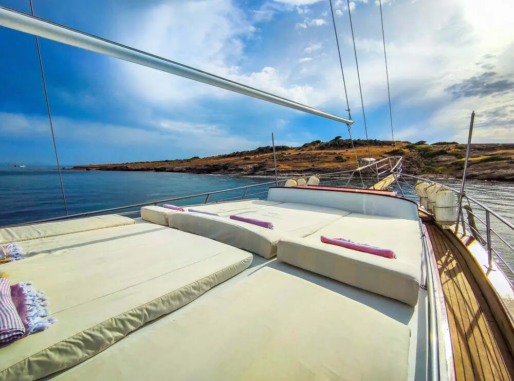 Equipped with a 280 HP MAN engine and a cruising speed of 9 knots, Çağan 2 is built for smooth sailing. Its advanced navigational aids, including radar, GPS, and depth sounder, ensure efficient and safe passage through the beautiful but sometimes challenging Aegean waters.