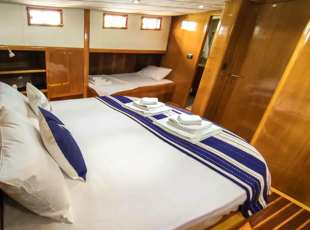 Çağan 2 offers three well-appointed cabins: one master, one double, and one single, each equipped with air conditioning and private bathrooms. The cabins are designed for maximum comfort and privacy, allowing guests to unwind in a tranquil setting after a day of exploration.