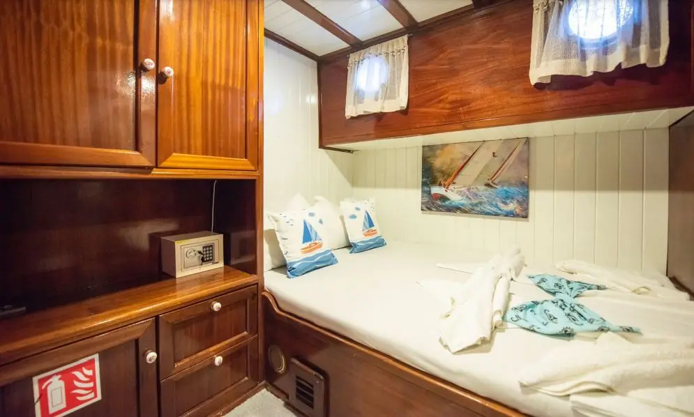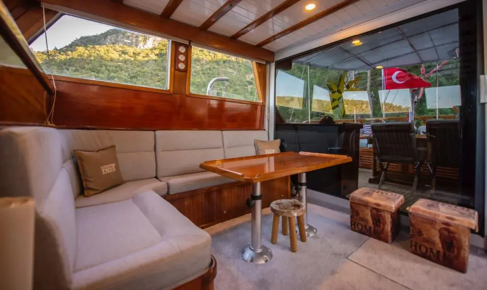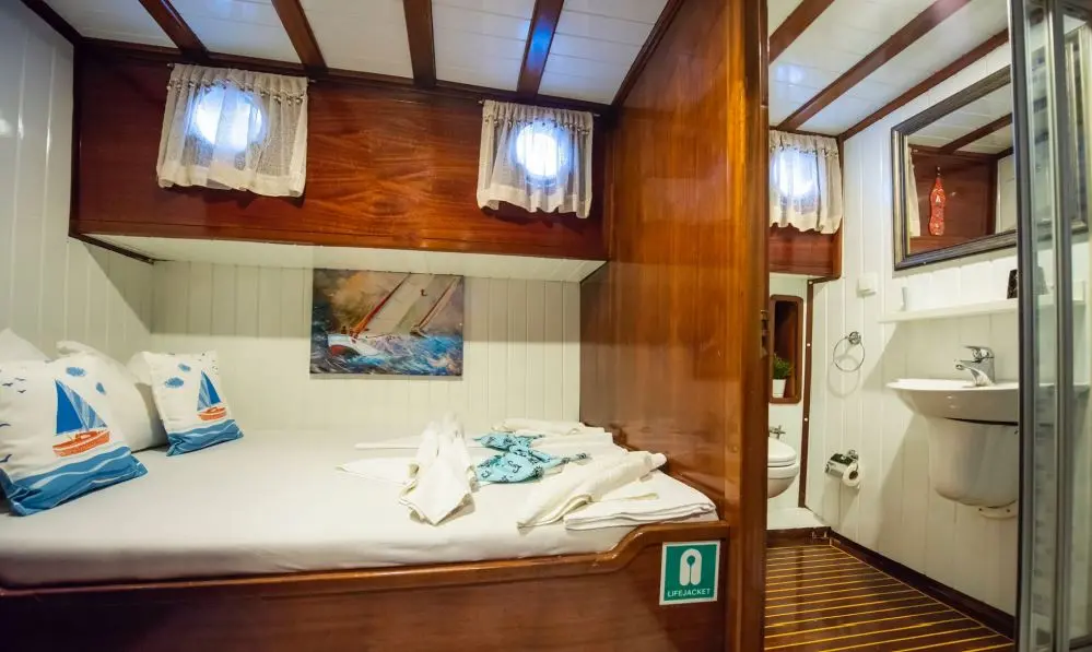 Çekin features three luxurious double cabins, each equipped with air conditioning, electric toilettes, and shower boxes. These cabins provide a comfortable and private retreat for guests after a day filled with activities. From the indoor restaurant to the onboard Wi-Fi and air conditioning, Çekin is outfitted with a range of amenities designed to enhance your comfort and enjoyment. The entertainment systems in the saloon ensure that there is never a dull moment during your voyage.