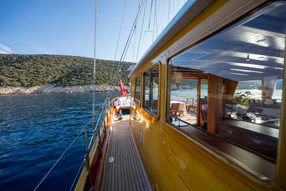 Step aboard Gulet Dionysos, a classic Turkish gulet offering an unforgettable blue cruise experience along the azure waters of the Aegean and Mediterranean Seas. Based in Bodrum, this beautifully maintained 26.60-meter traditional yacht combines timeless wooden craftsmanship with modern comfort — perfect for family charters, couples, or small groups seeking a relaxed and scenic sailing holiday.