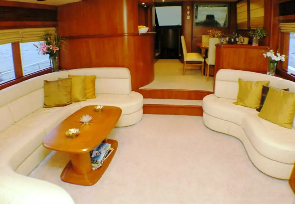 The saloon is the heart of the Flamingo, designed for relaxation and socializing. It is equipped with air conditioning, a TV, DVD player, music system, and wireless internet, ensuring a comfortable and entertaining environment. From spacious living areas to modern conveniences, Flamingo ensures a luxurious stay. Air conditioning is available in all cabins, providing relief from the summer heat.