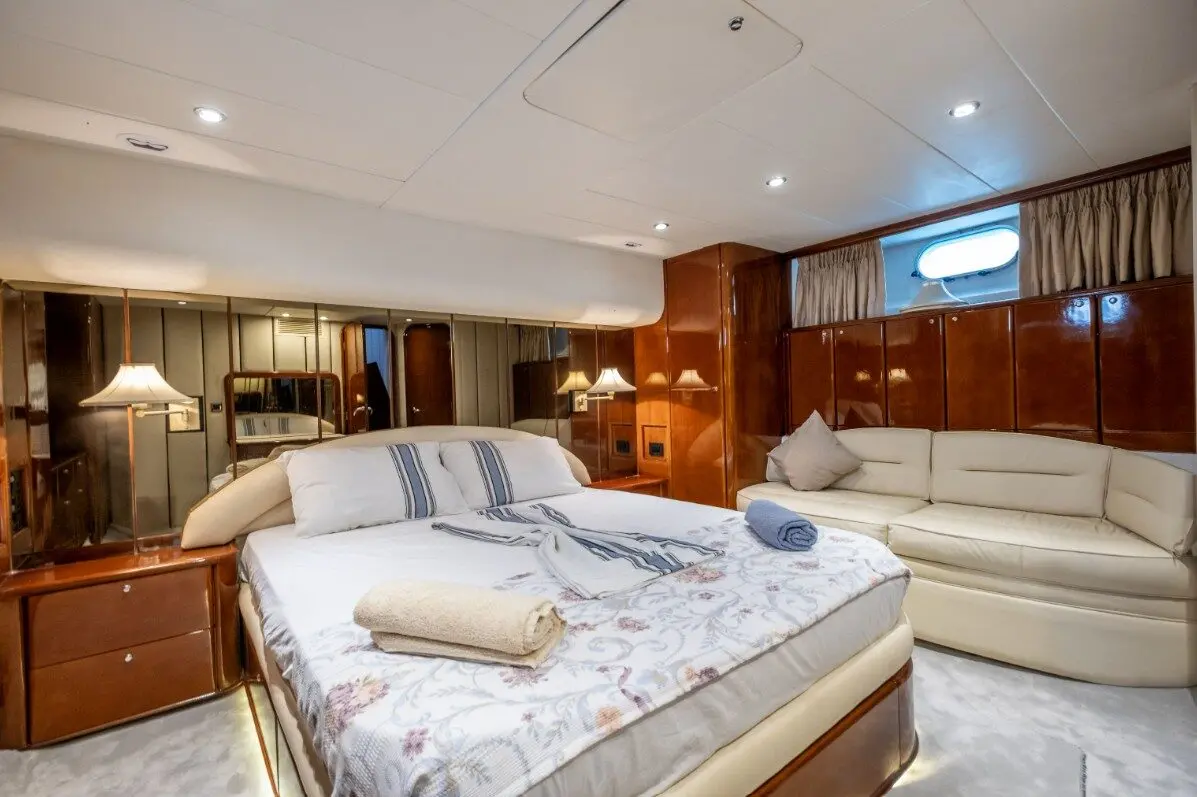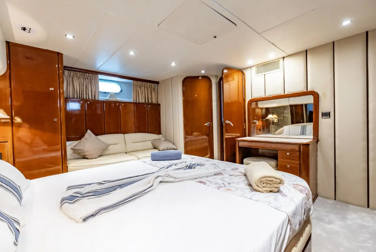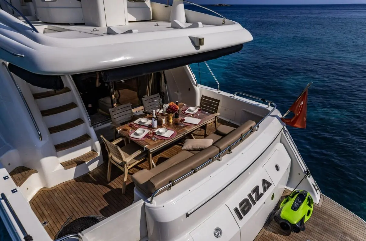 This flexible setup ensures every guest has a personal space to retreat to after a day in the sun. In total, Motor Yacht Ibiza accommodates up to 6 guests, making it one of the most group-friendly yachts in the region.