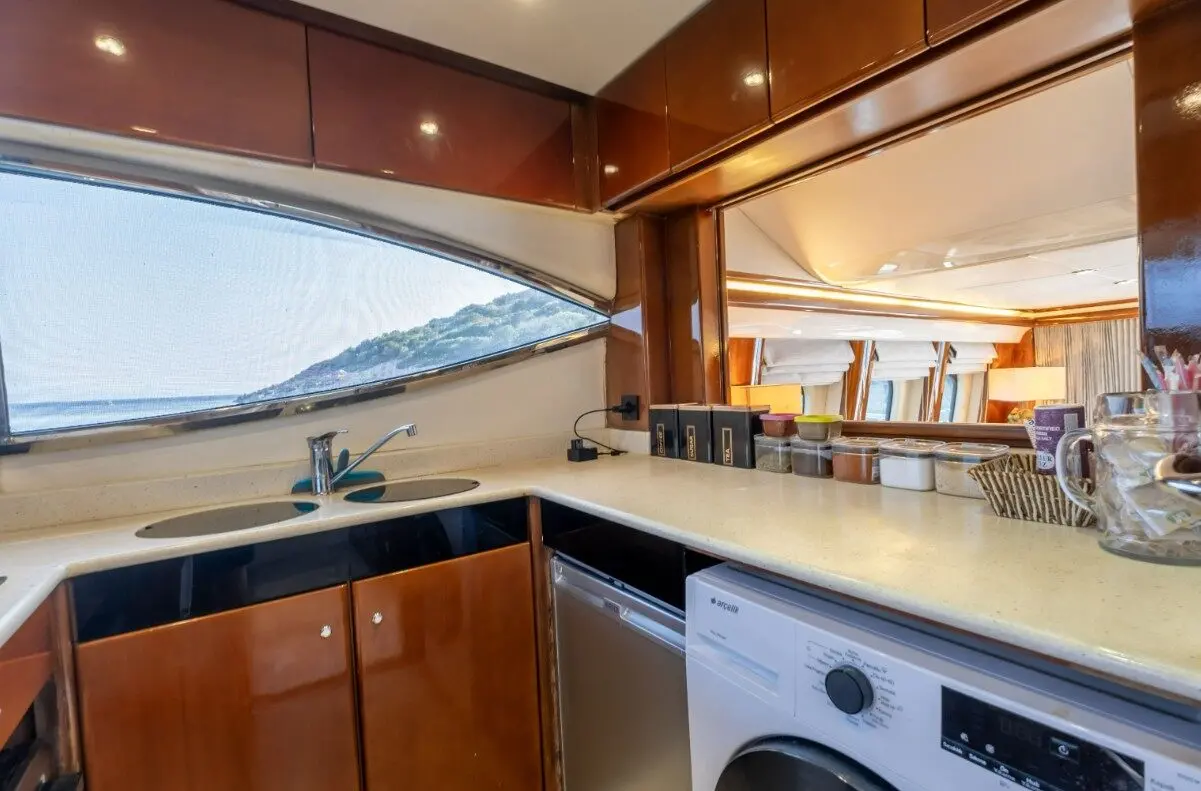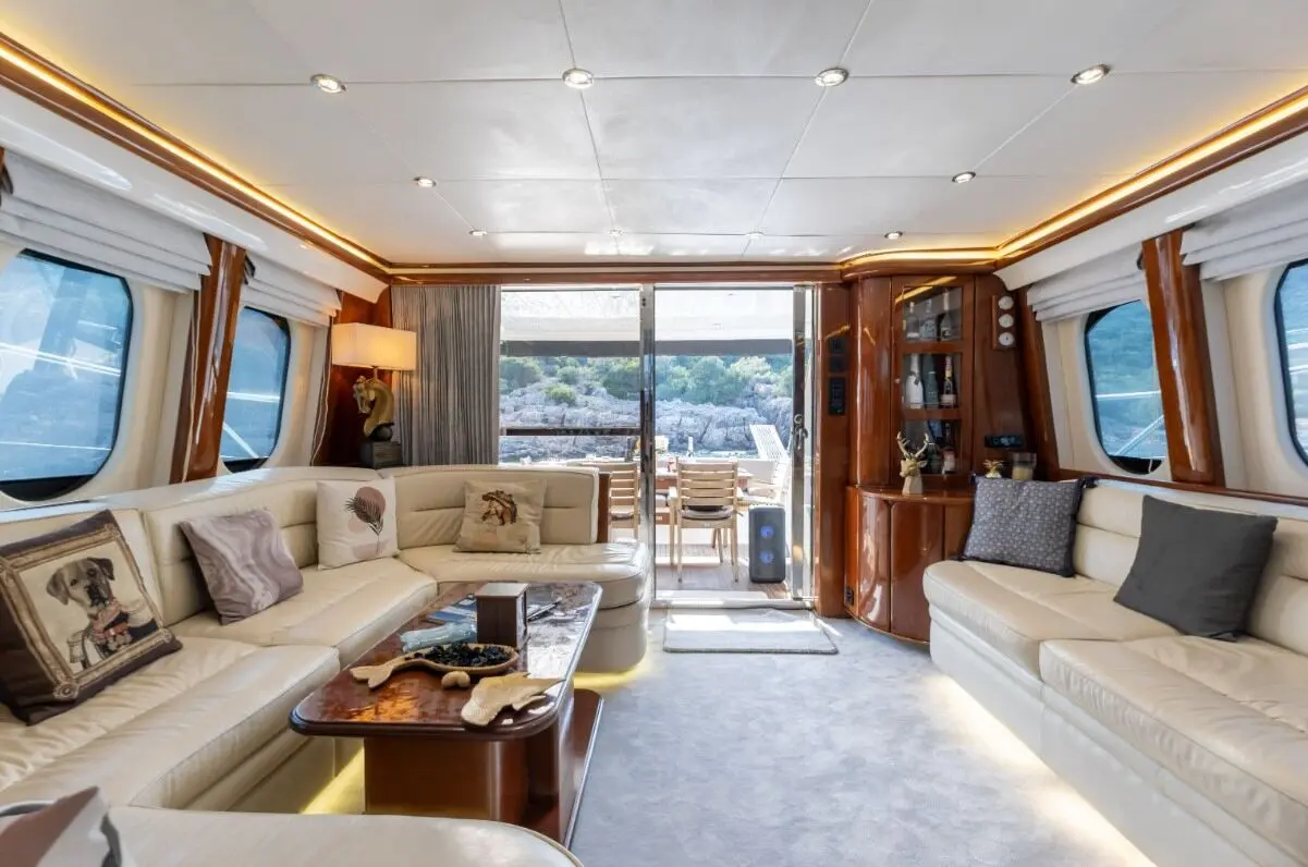 Despite its modest build age, the yacht includes all essential comfort features. While the interiors may be more classic than modern, the design supports spacious, breezy relaxation.