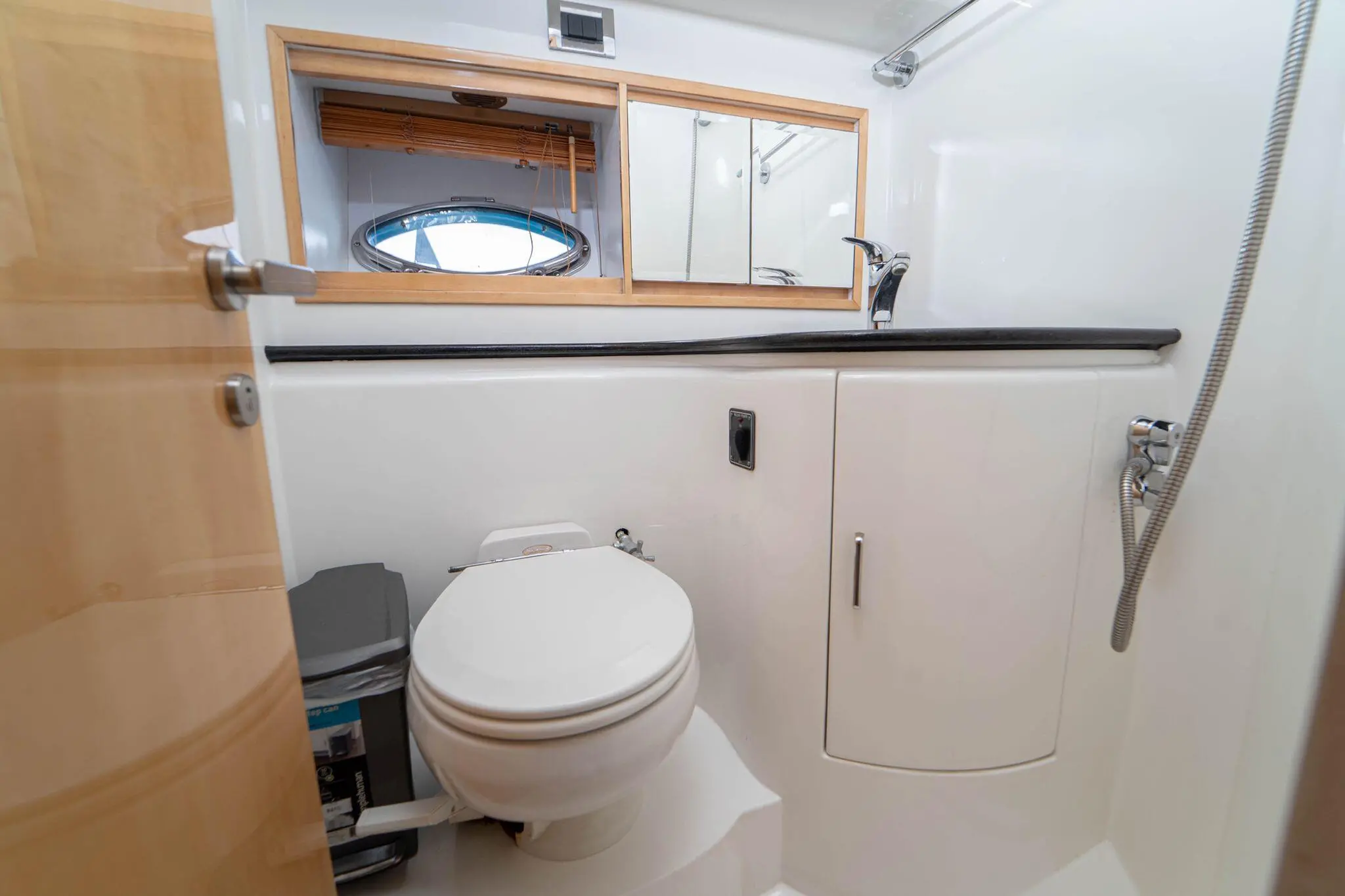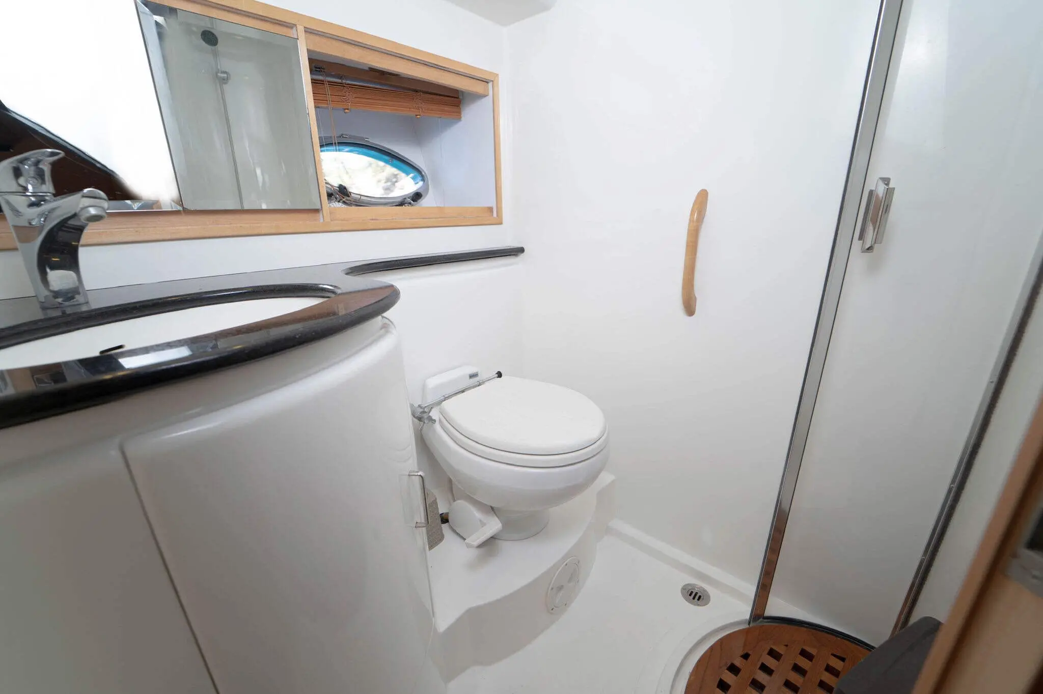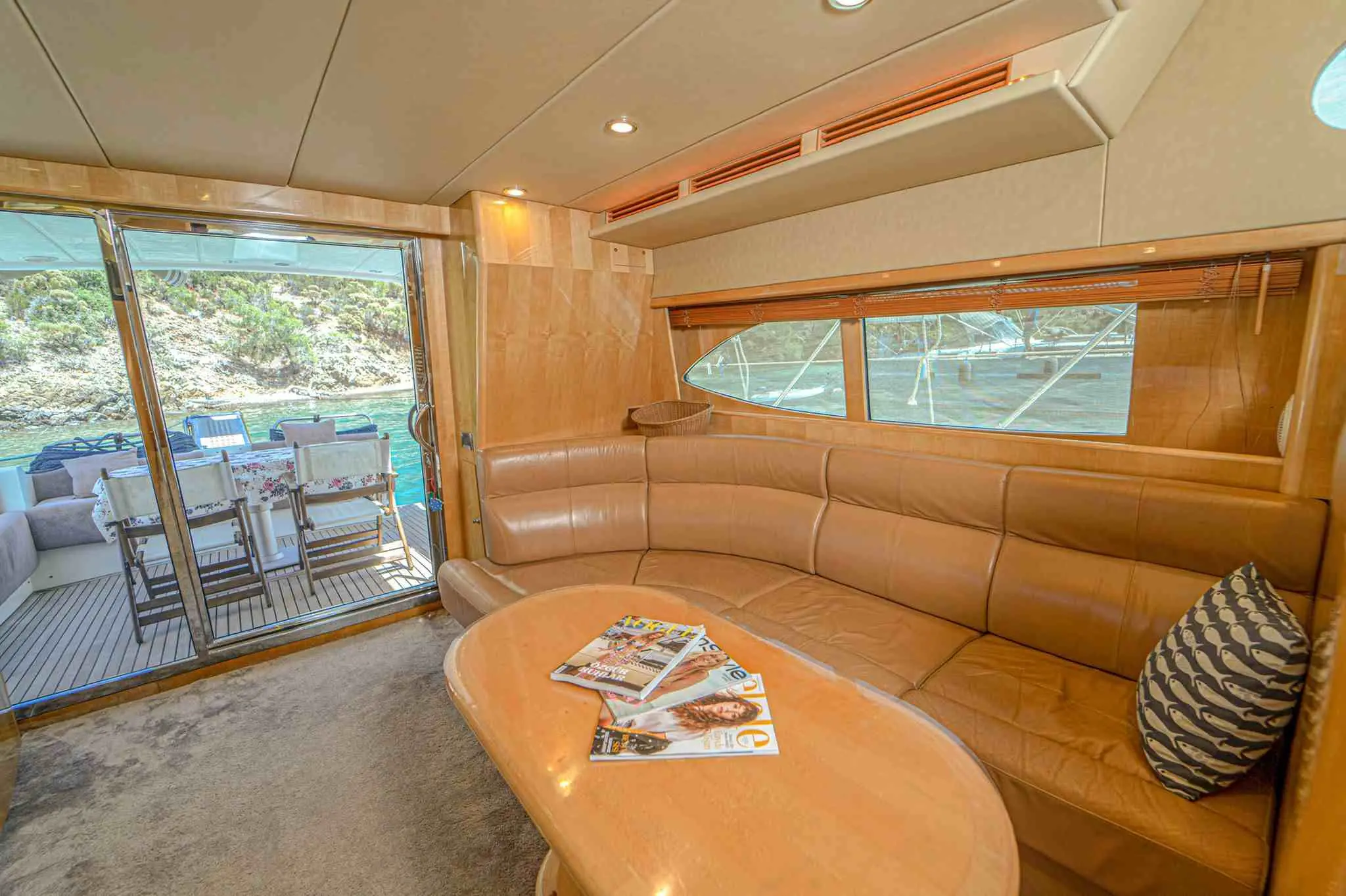 The yacht houses three tastefully decorated cabins: a master suite, a double, and a twin cabin, each equipped with air conditioning and private shower facilities. The attention to detail in each cabin creates a welcoming and luxurious atmosphere, ensuring rest and privacy.