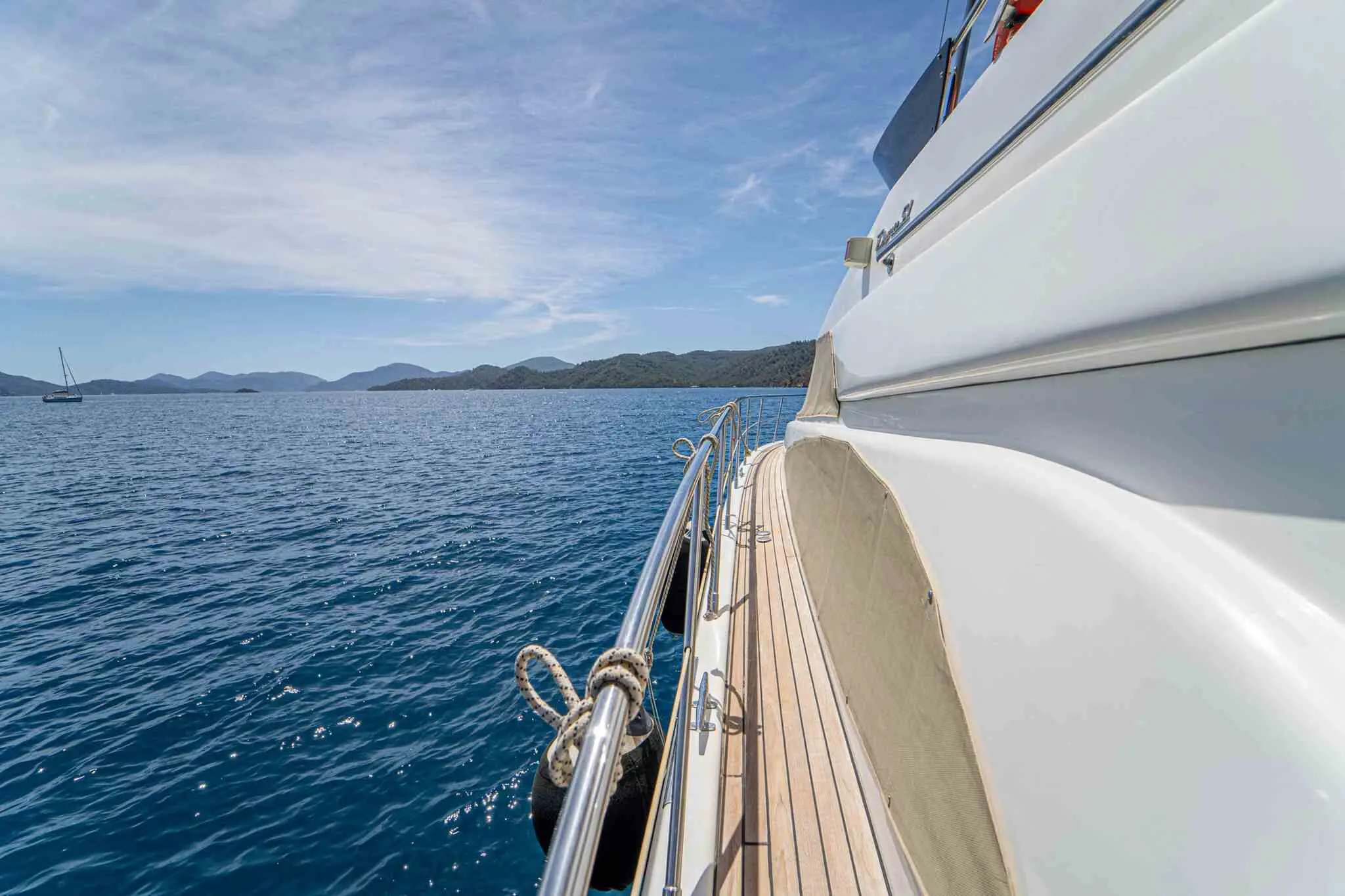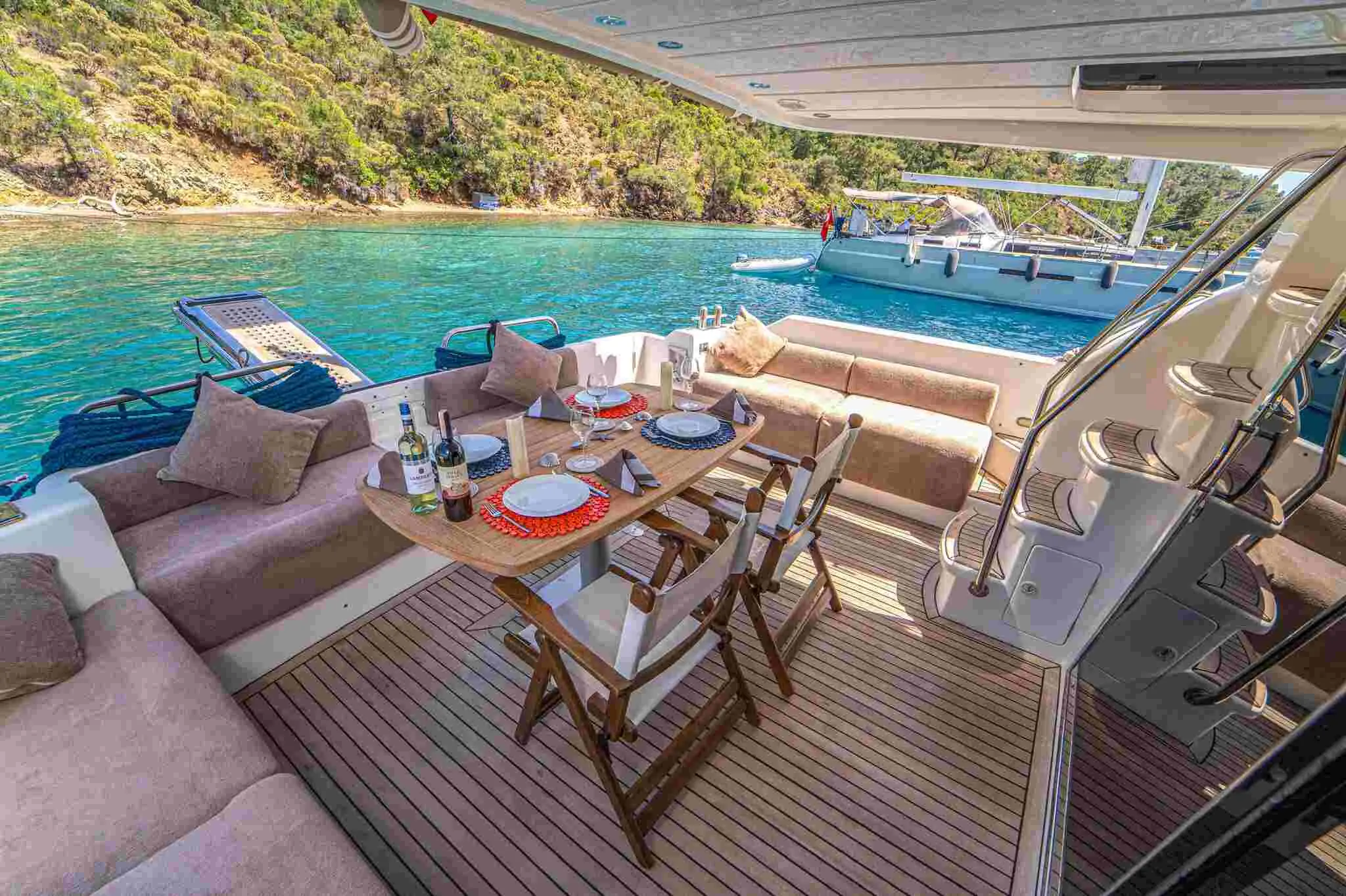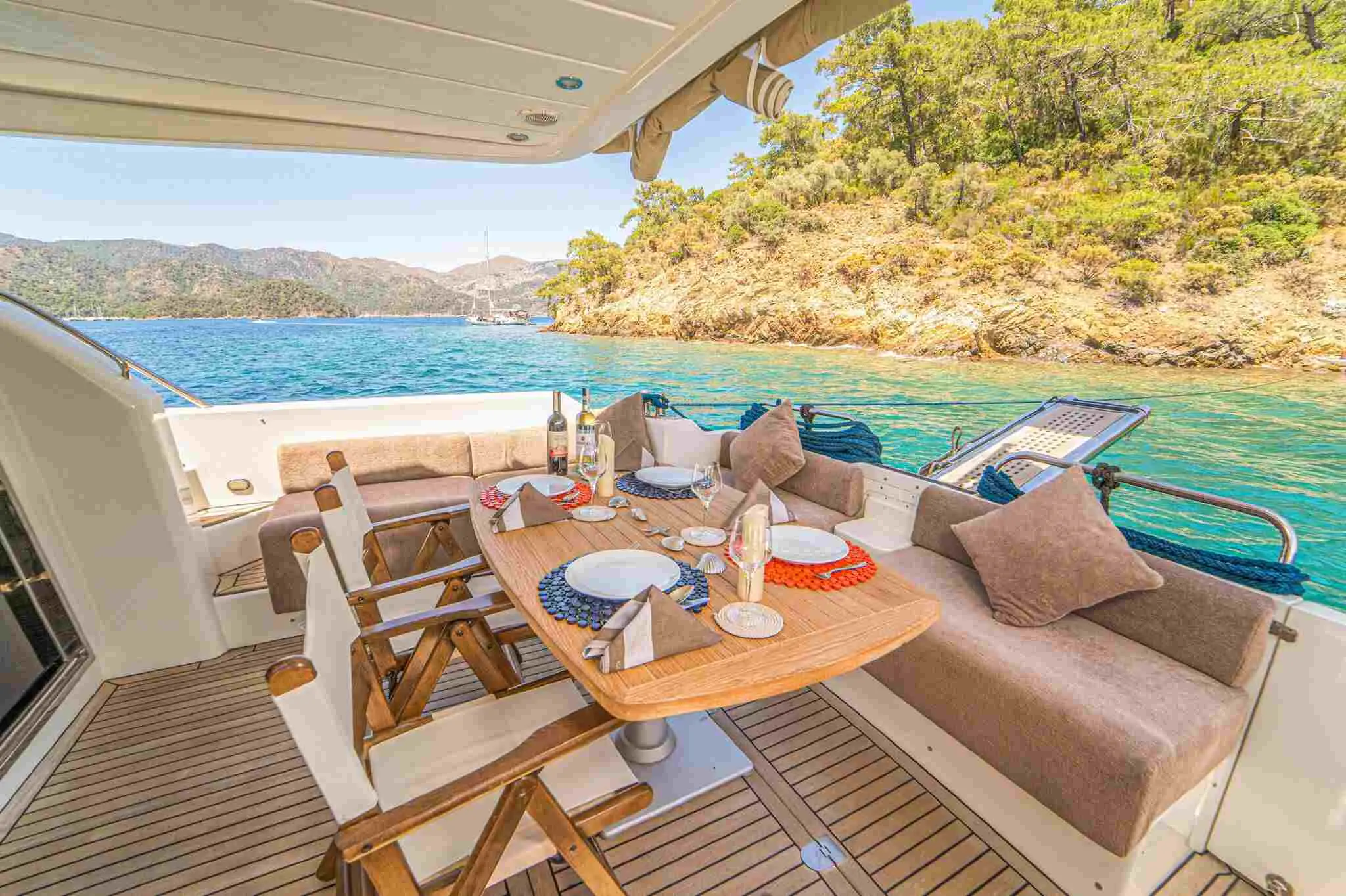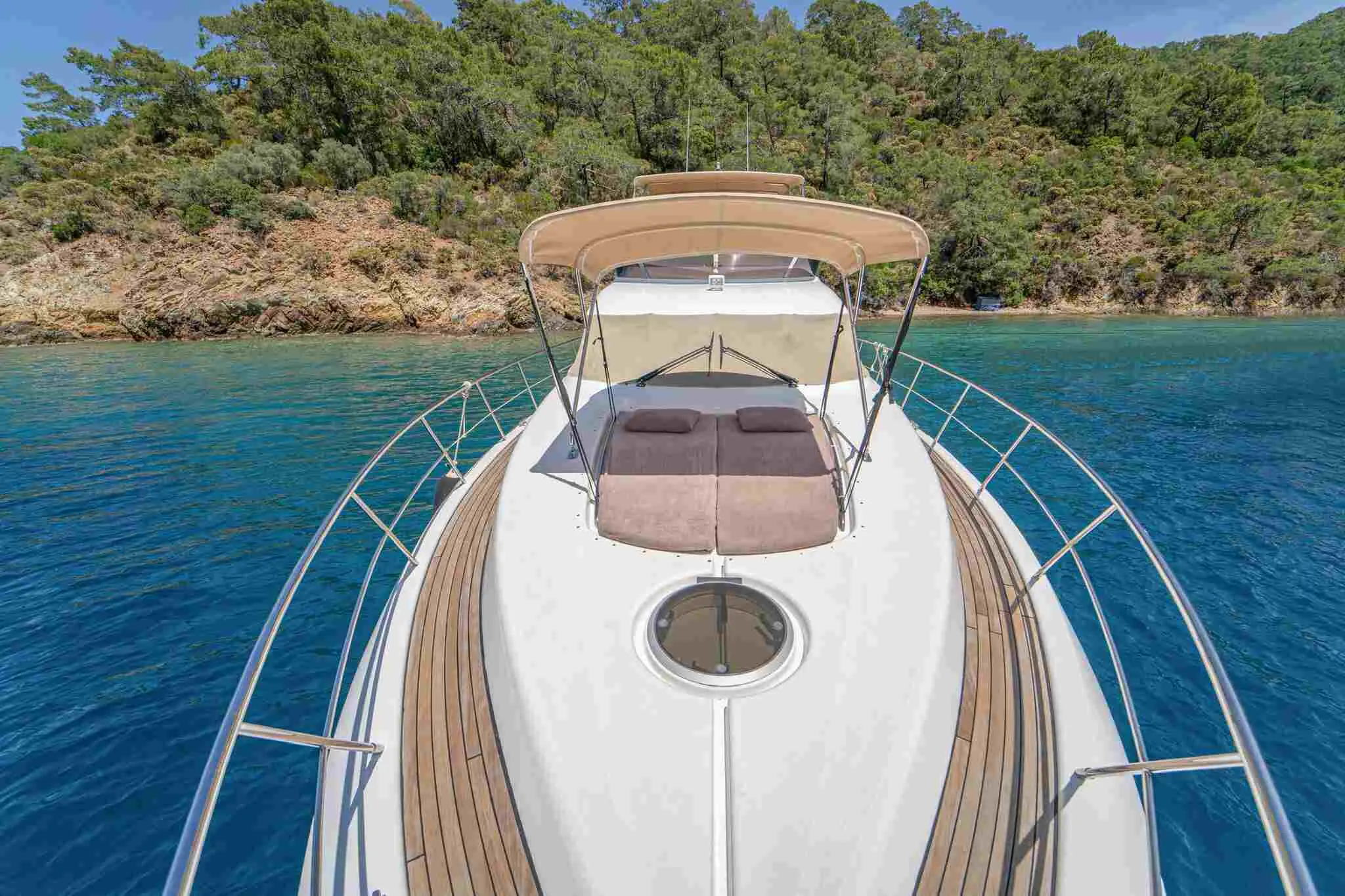 Step aboard Imera, a cozy and well-appointed motor yacht moored in the serene marina of Göcek, Turkey. At 16.85 meters in length, Imera offers an intimate setting combined with high-end amenities, designed to accommodate up to 6 guests in sheer comfort and style.