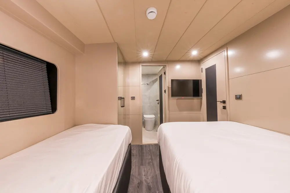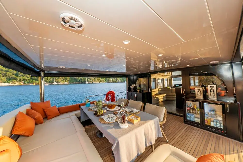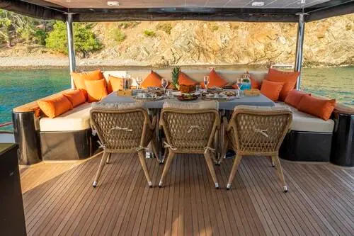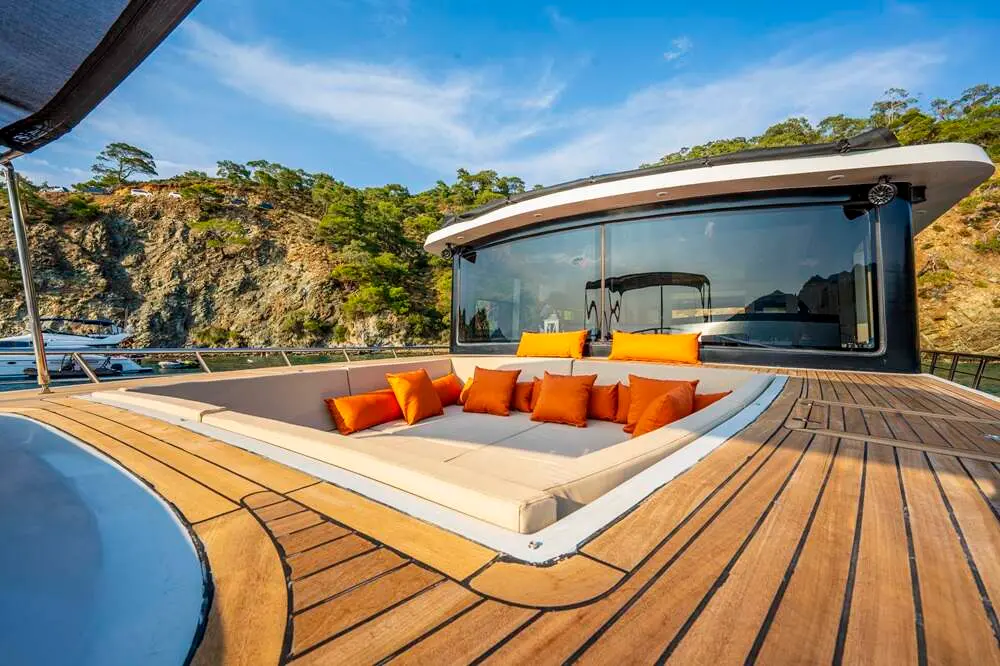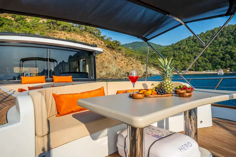 The Trawler Jr. Simay is an excellent choice for travelers seeking a luxurious and intimate yachting experience. Its modern design, comfortable accommodations, and array of water toys make it perfect for both relaxation and adventure. Whether you're soaking up the sun on deck, exploring secluded bays, or indulging in water sports, Jr. Simay offers a personalized and unforgettable journey along Turkey’s breathtaking coastlines.