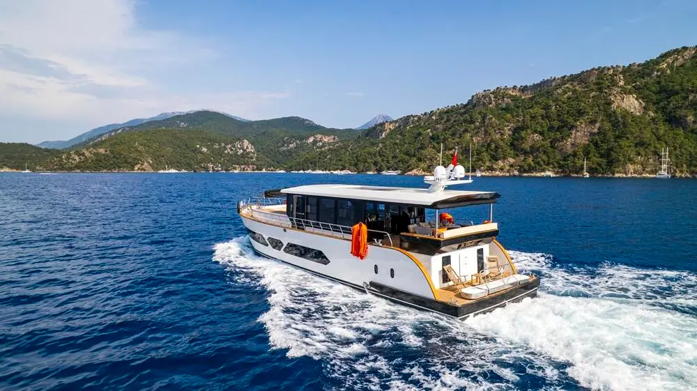 The Trawler Jr. Simay is a recently launched luxury trawler, offering a blend of style, comfort, and state-of-the-art amenities for a memorable yachting experience. With a base port in the scenic Fethiye region of Turkey, this 21-meter trawler is designed for relaxation and adventure along the captivating Turkish coastlines. Built in 2024, the Trawler Jr. Simay has a sleek design and modern features, perfect for guests looking to explore with elegance and ease.