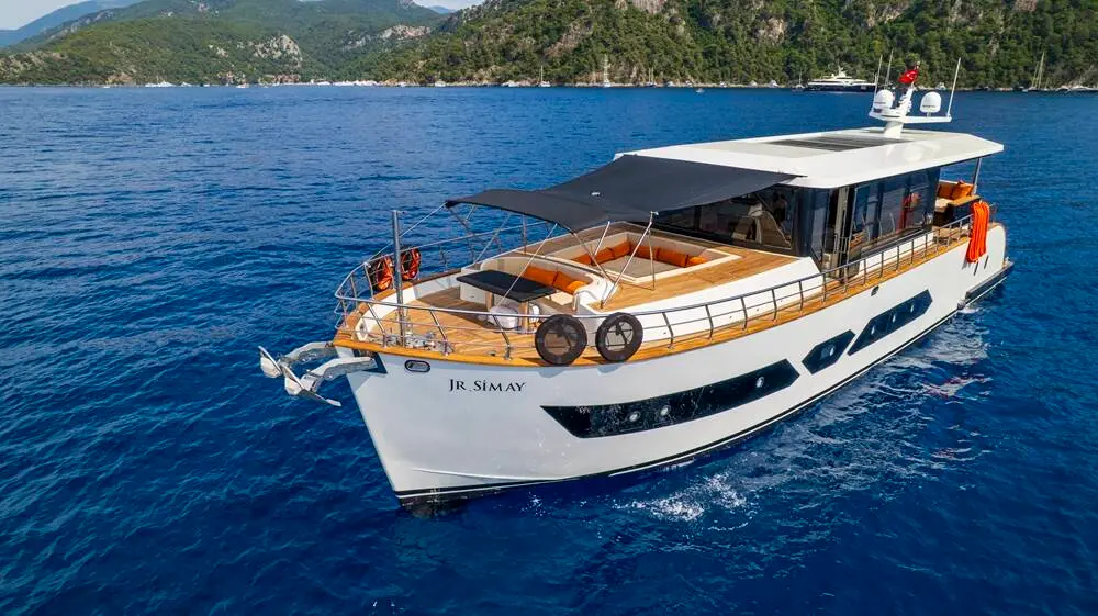 The Trawler Jr. Simay, a 21.50-meter luxury trawler launched in 2025, offers the perfect combination of style, comfort, and adventure. Based in Fethiye, Turkey, this state-of-the-art vessel provides a serene and elegant platform for exploring the captivating Turkish coastlines. With modern features, spacious accommodations, and a range of onboard entertainment options, Jr. Simay is designed for families, friends, or couples seeking a memorable yachting experience.