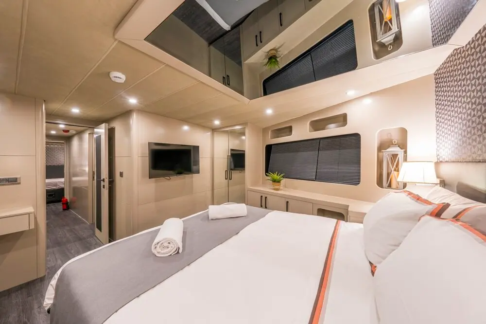 Jr. Simay provides luxurious accommodations for up to 8 guests in three elegant cabins. Equipped with cutting-edge navigation systems, the Trawler Jr. Simay ensures a safe and enjoyable cruising experience. Jr. Simay offers an impressive array of entertainment options and water toys to enhance your journey.