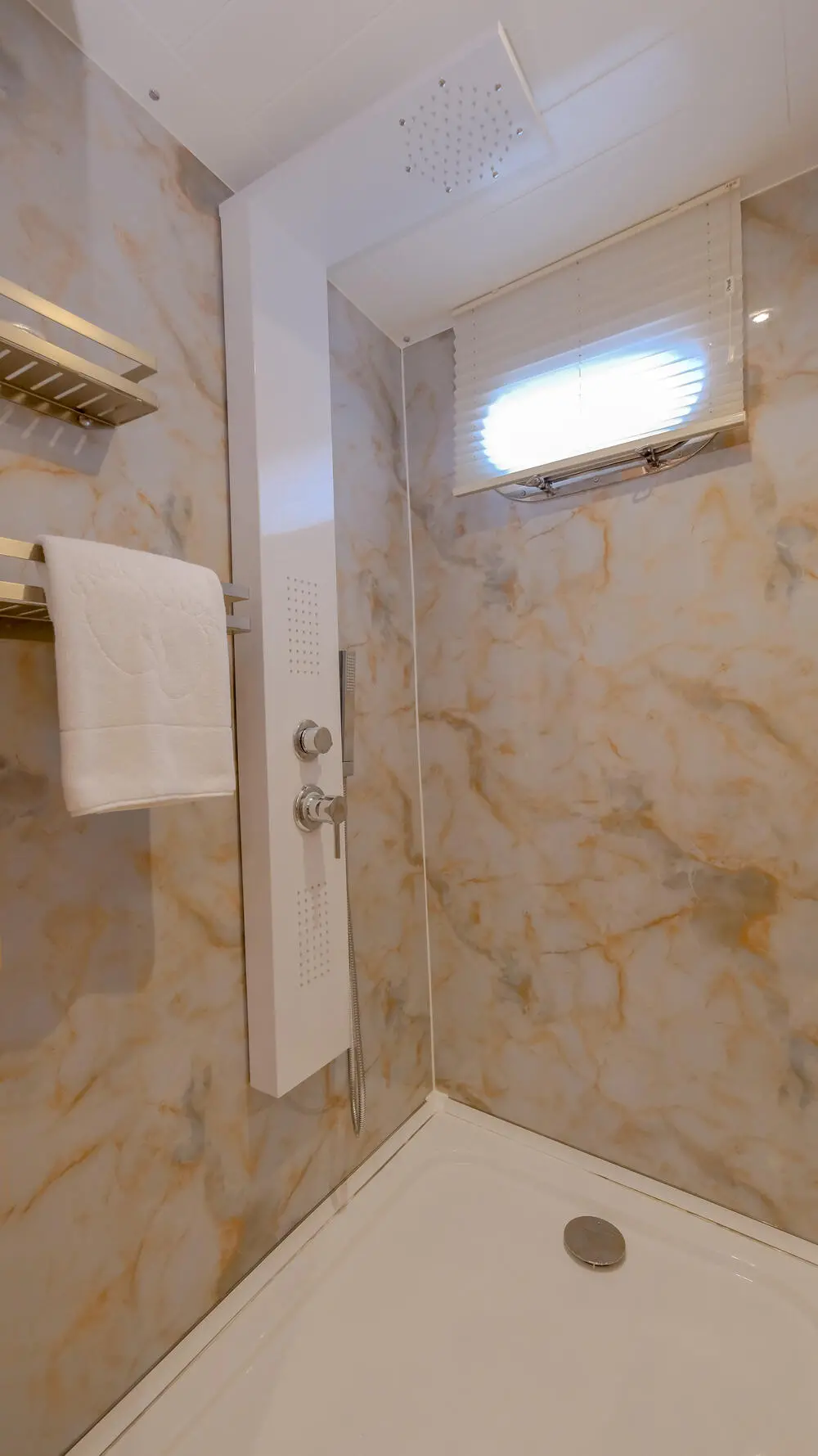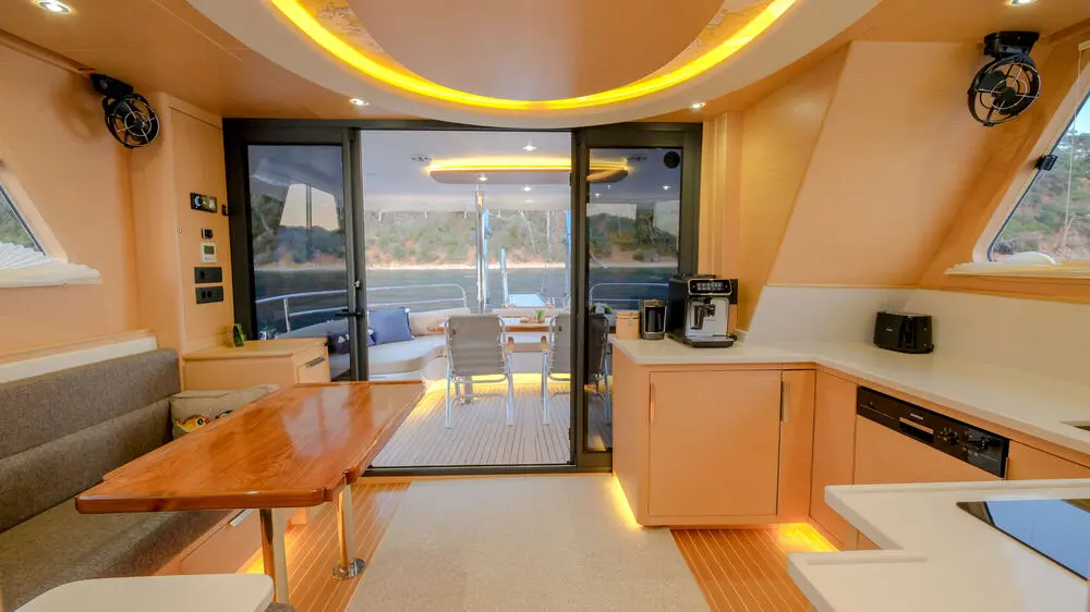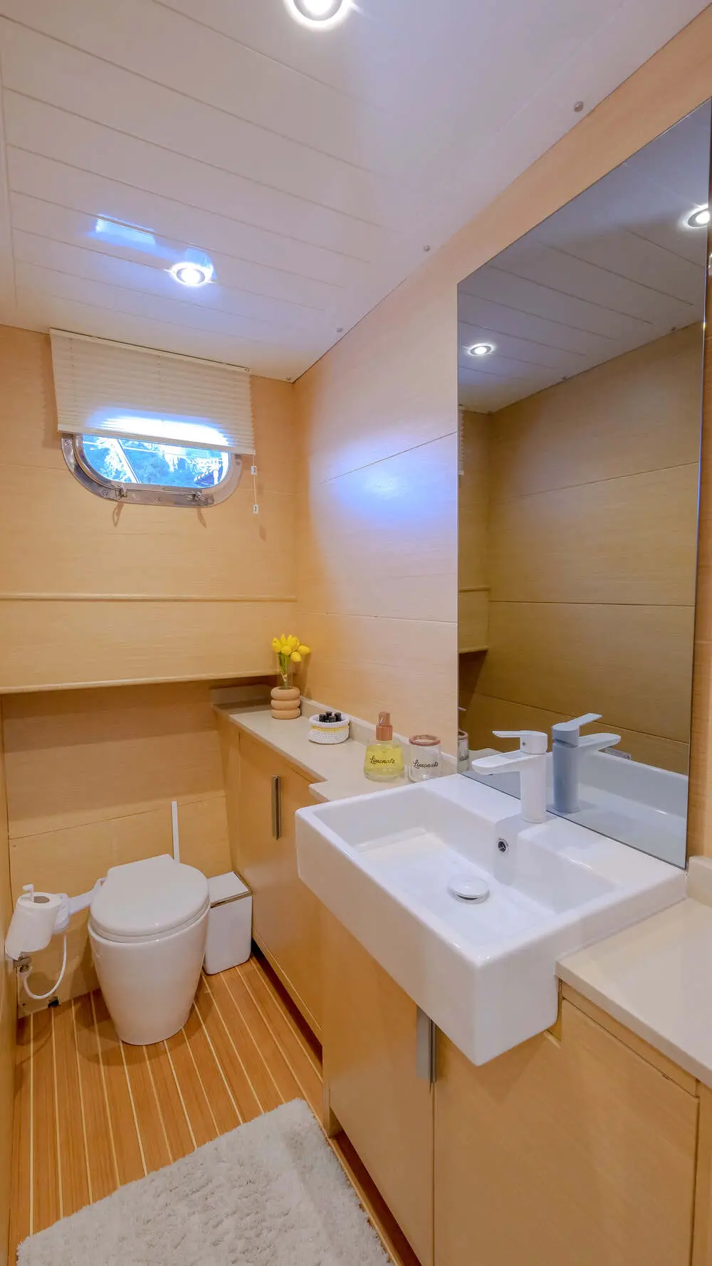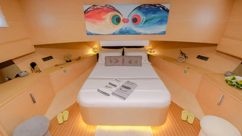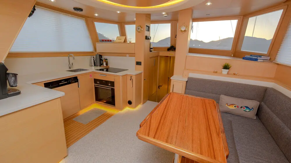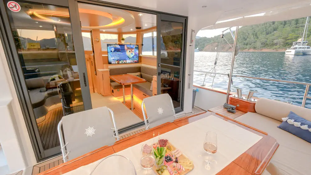 Wi-Fi, Full Air Condioning system, TV, Refrigator, Ice Maker, Water Maker, BBQ, 7/24 Hot Water, Deck Shower, 5 mt. x 100 hp Boat, Kayak x 2 pcs, Wakeboard, Kneeboard, Ringo (4 person), Water skiing, Water saddle, Sea bed, Snorkelling & Fishing Equipment, Backgammon, Okey, Playing card.
