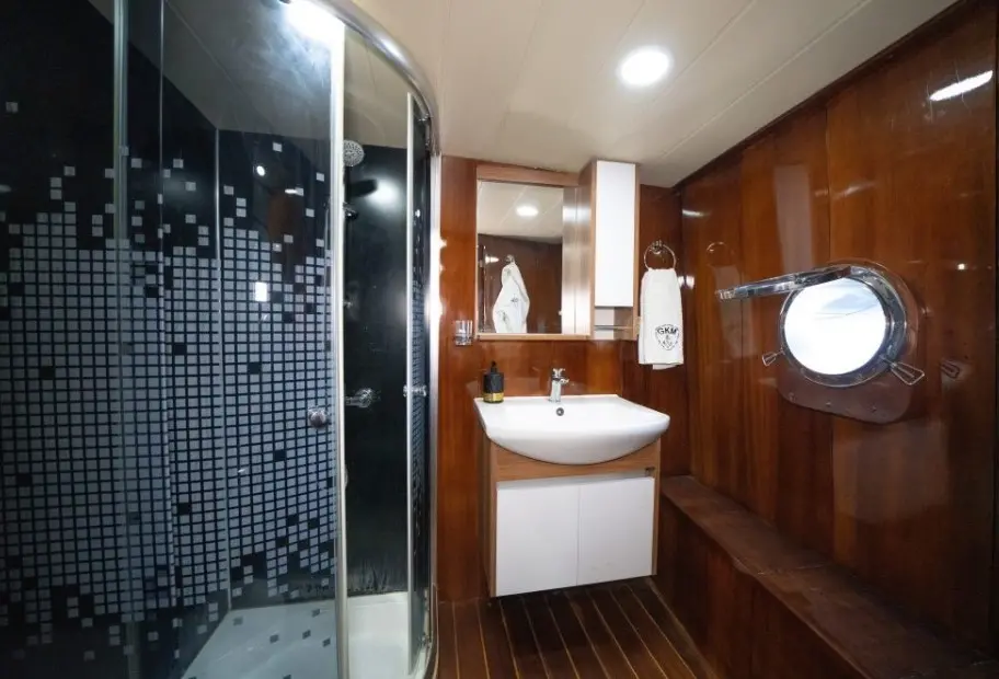 All bathrooms are equipped with modern amenities, including hot and cold water, ensuring that guests have all the comforts of home even while at sea. The en-suite bathrooms add an extra layer of convenience, especially for families or groups of friends. Air conditioning is available throughout the gulet, including in all cabins. This ensures that guests remain comfortable, regardless of the outside temperature, making the vessel suitable for sailing even during the height of summer.