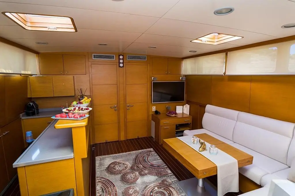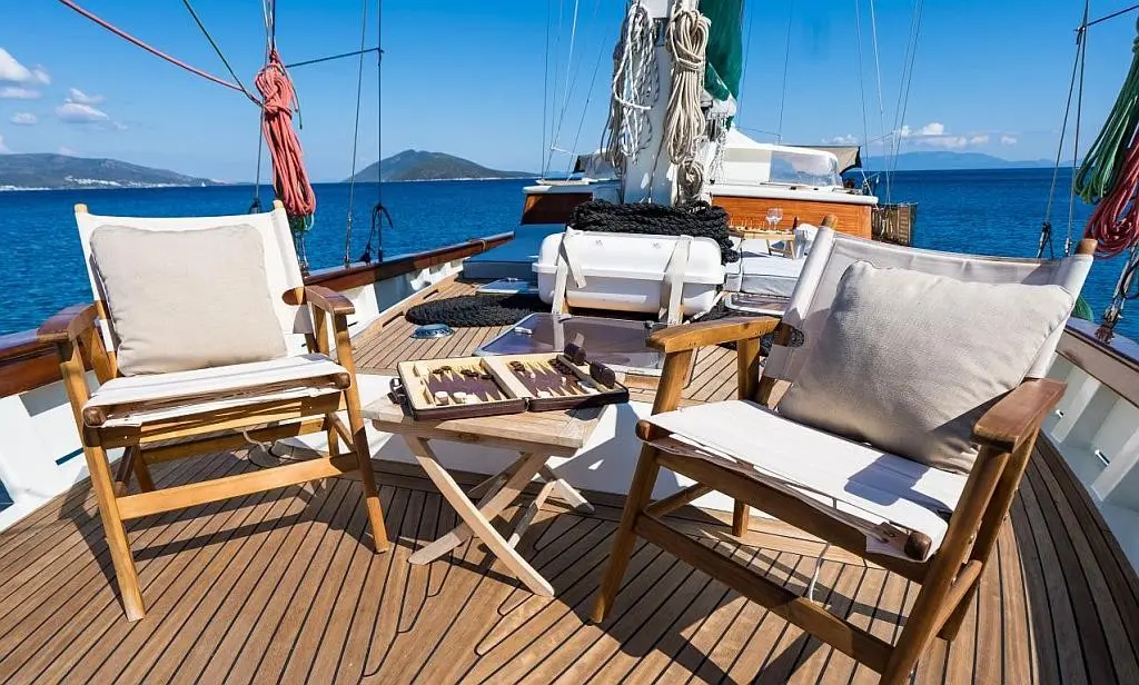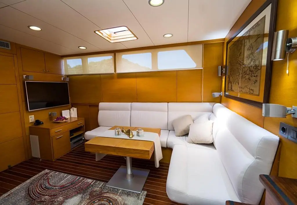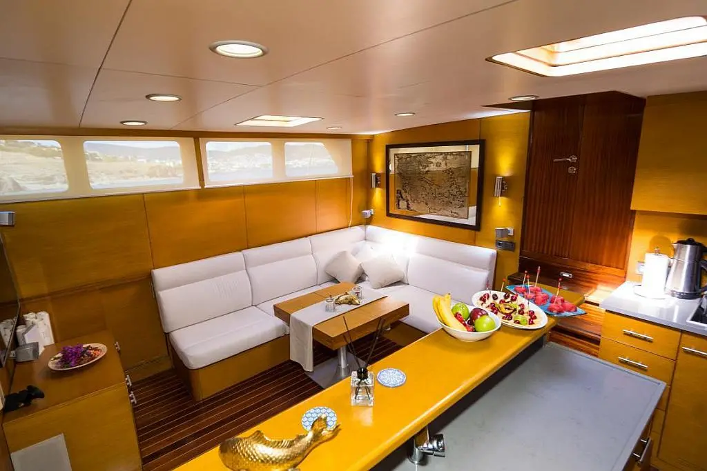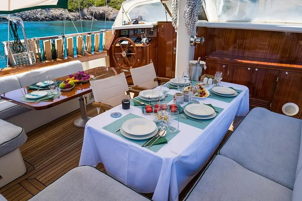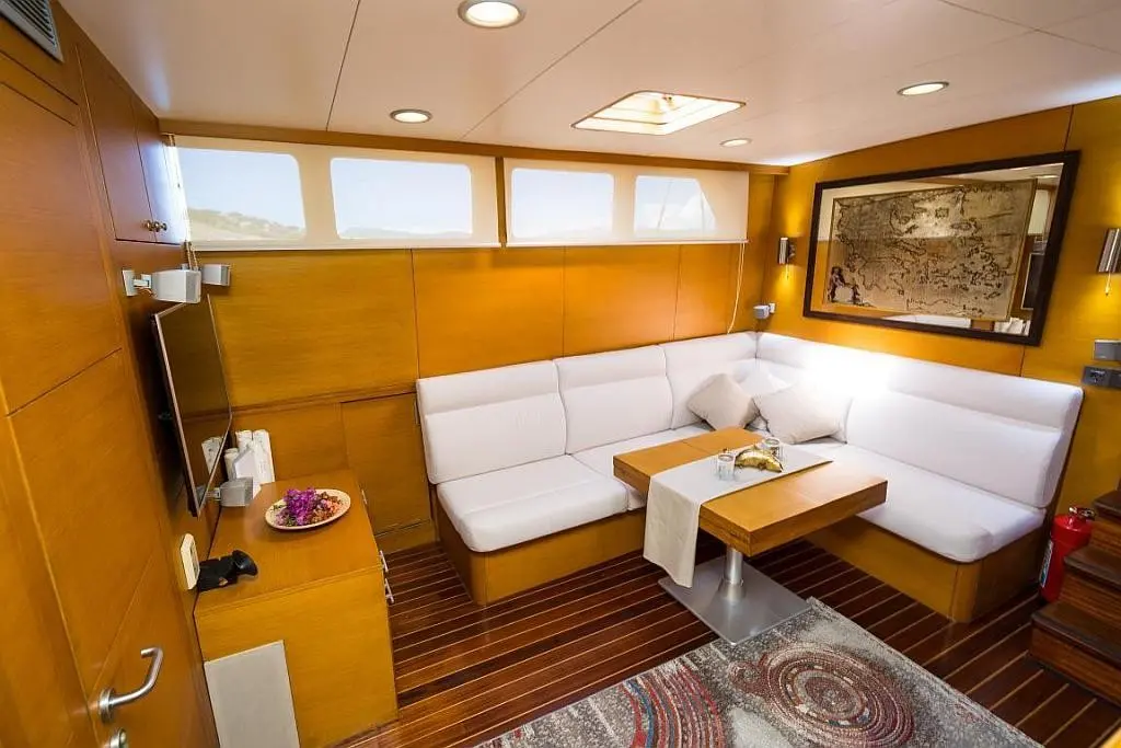 Moe is outfitted with the latest in maritime navigation technology, including radar, depth sounder, VHF radio, GPS, and autopilot systems. These tools assist the skilled crew in navigating the best routes and ensuring a safe journey across the Turkish coastline and beyond.