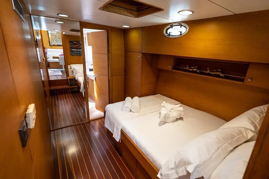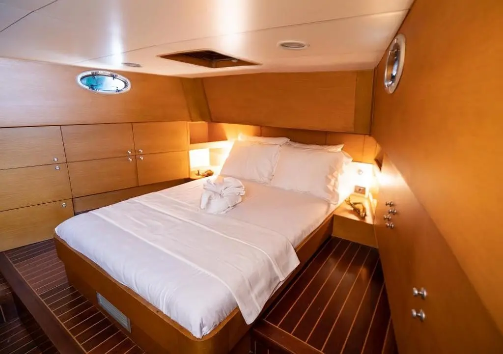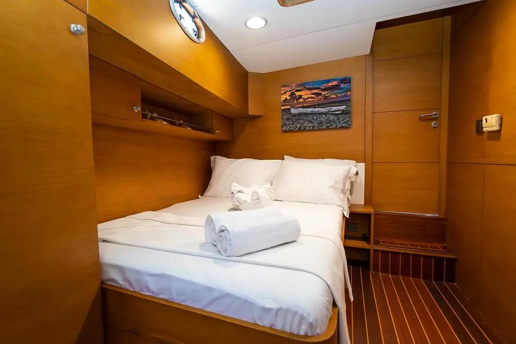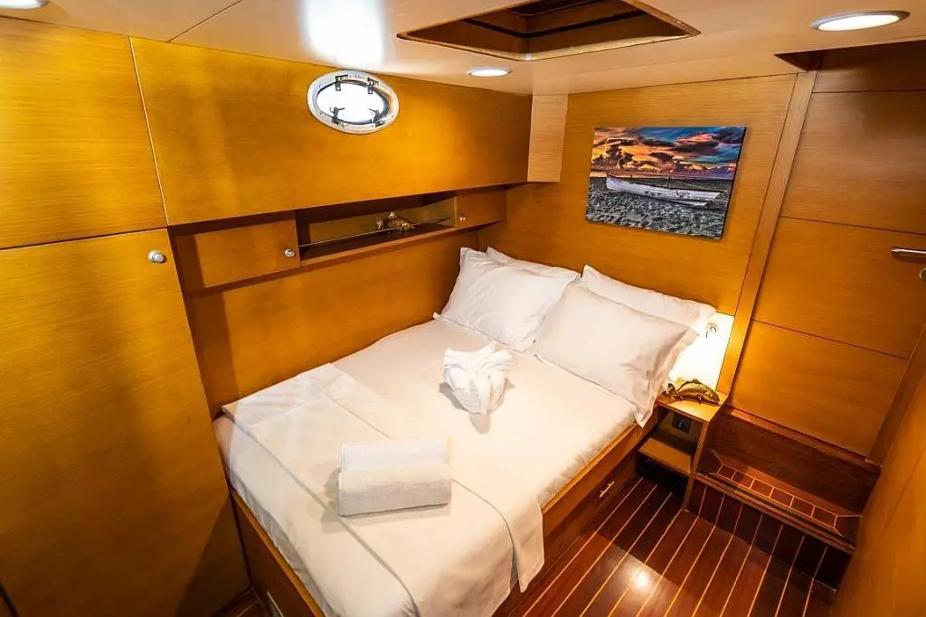 Every cabin is an oasis of luxury, complete with high-quality linens and state-of-the-art entertainment systems. The full air conditioning throughout the gulet guarantees comfort no matter the weather outside, making your stay pleasant during all seasons.