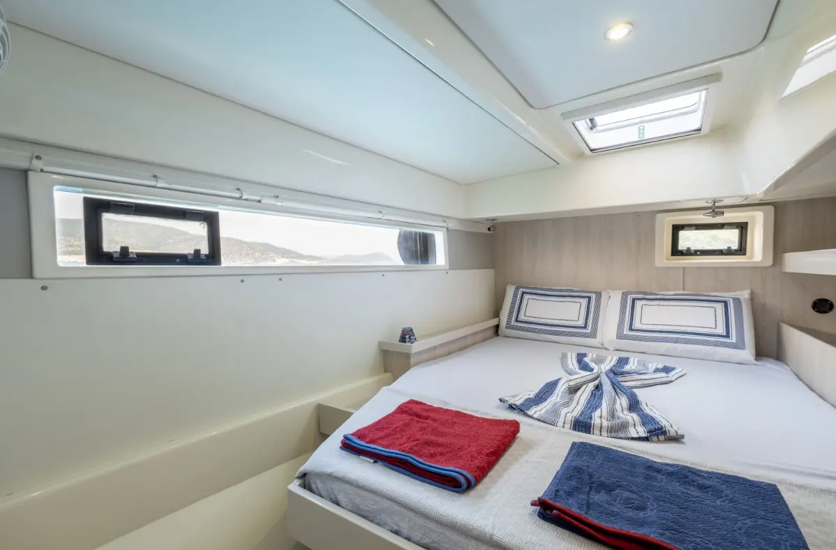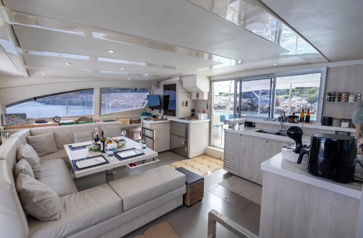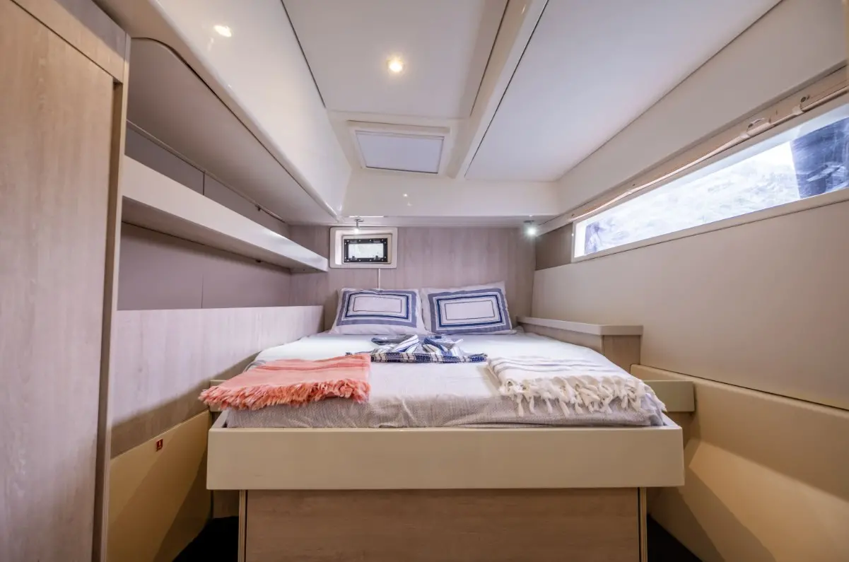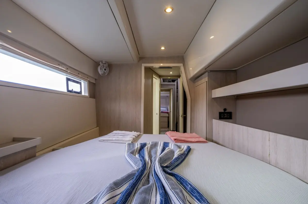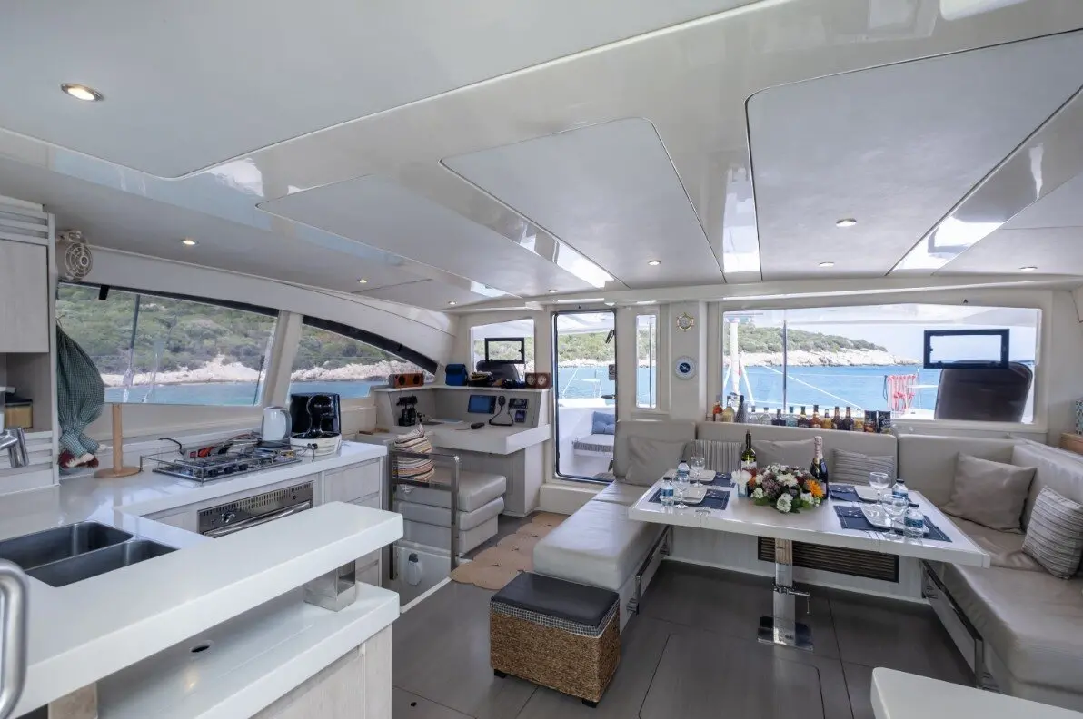 Catamaran Monaco features a layout optimized for privacy and group comfort, offering. The catamaran offers a comfortable and stylish interior with features that enhance both day and night cruising experiences. Outdoor living is equally enjoyable, thanks to shaded lounging areas and sunbathing zones on the deck. The catamaran’s dual hulls provide not only increased space but also a smooth and stable ride.