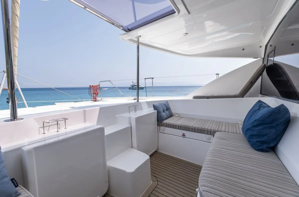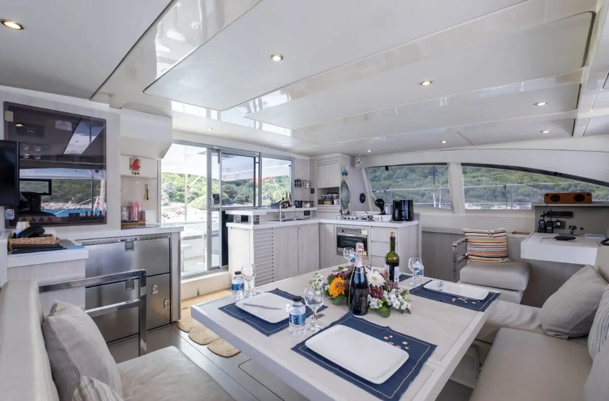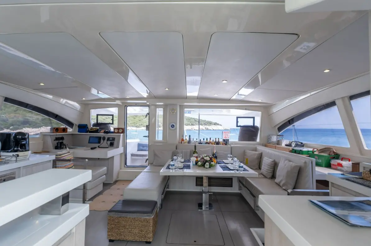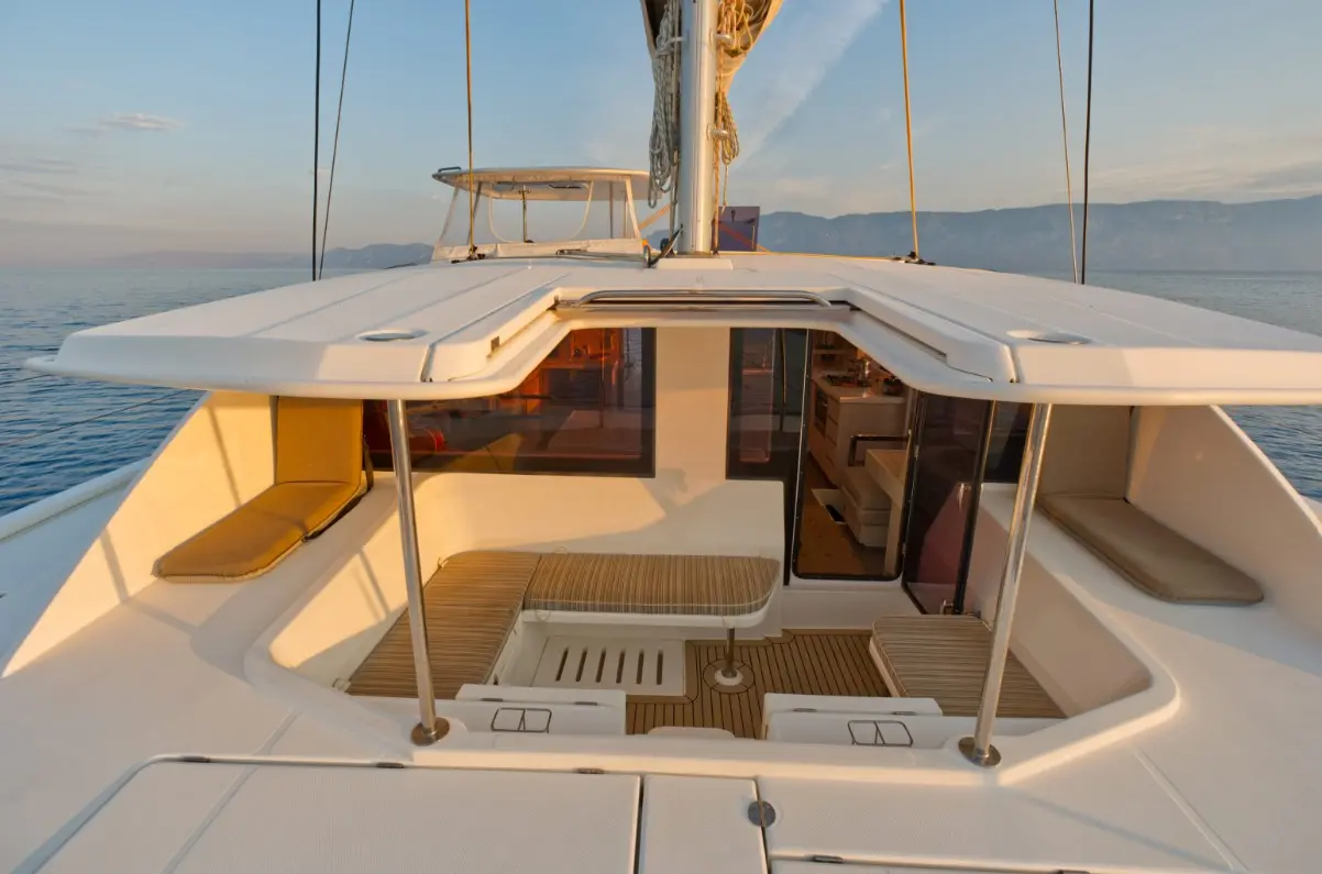 Catamaran Monaco features a layout optimized for privacy and group comfort, offering. The catamaran offers a comfortable and stylish interior with features that enhance both day and night cruising experiences. Outdoor living is equally enjoyable, thanks to shaded lounging areas and sunbathing zones on the deck. The catamaran’s dual hulls provide not only increased space but also a smooth and stable ride.