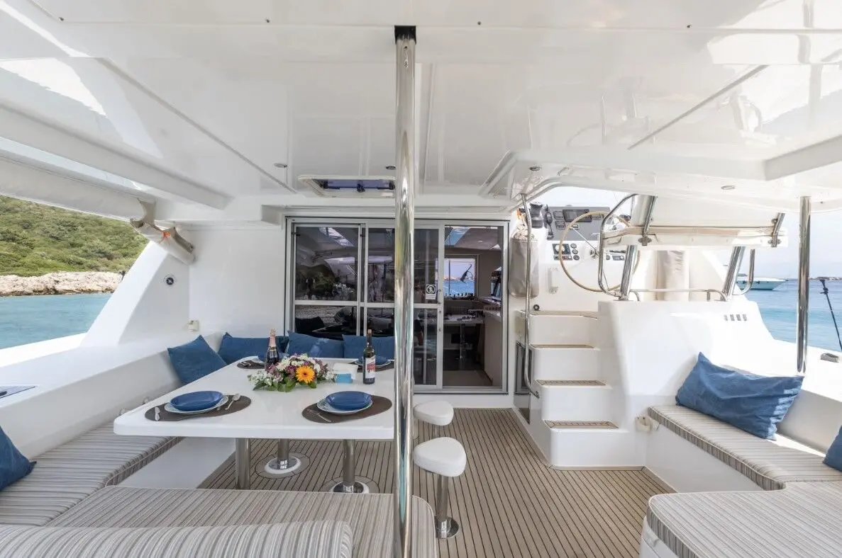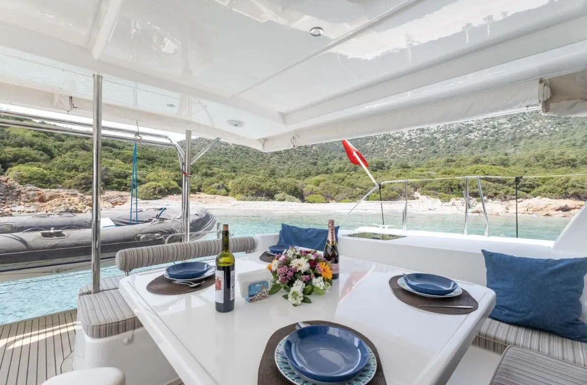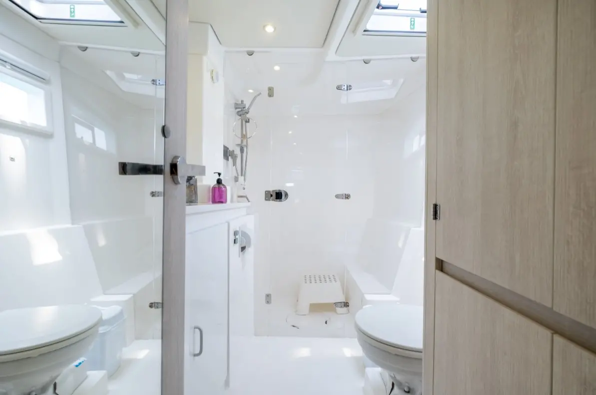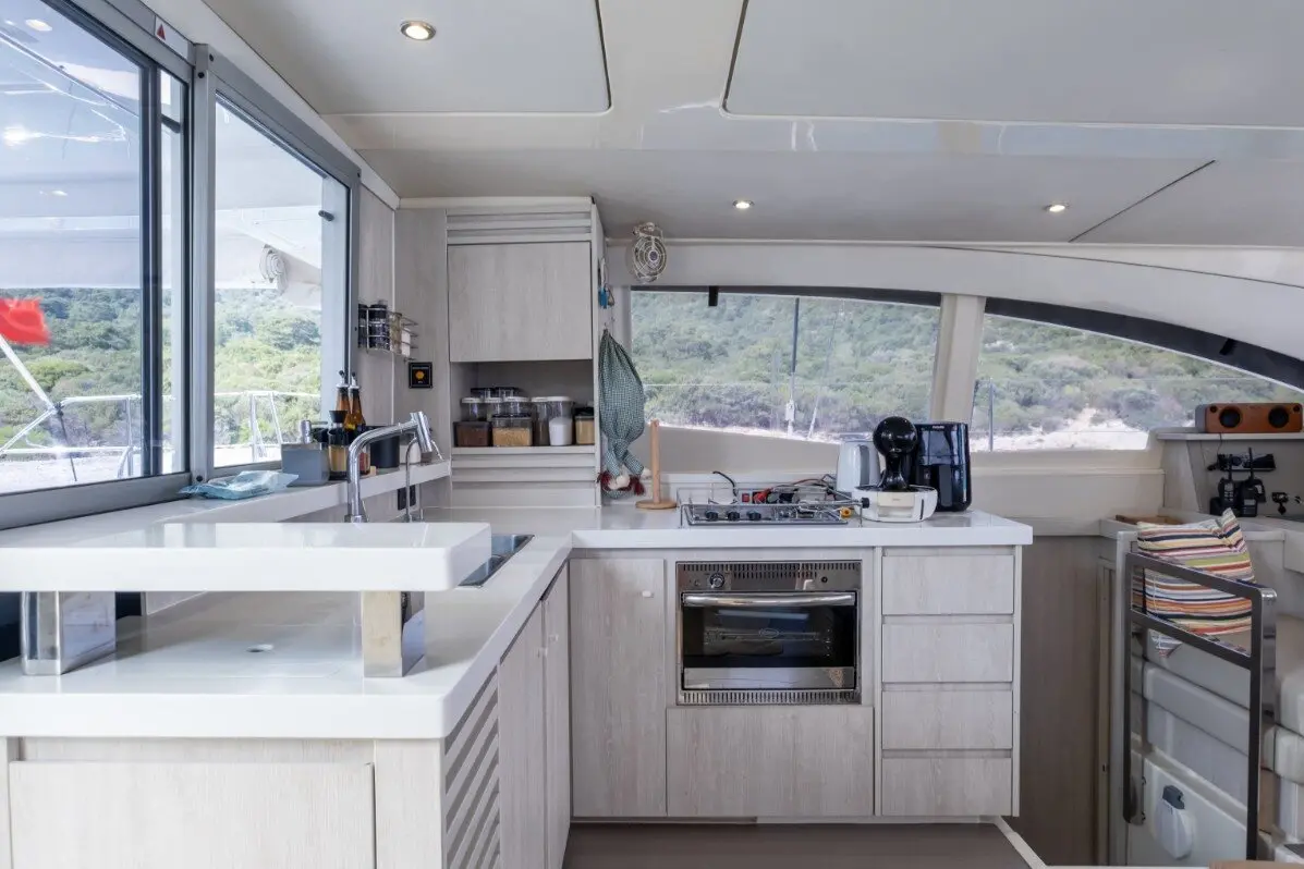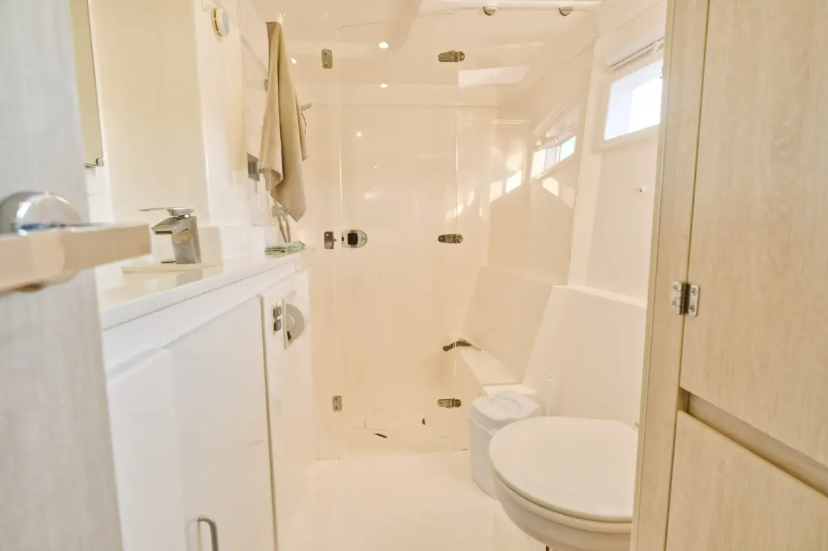 Catamaran Monaco features a layout optimized for privacy and group comfort, offering. The catamaran offers a comfortable and stylish interior with features that enhance both day and night cruising experiences. Outdoor living is equally enjoyable, thanks to shaded lounging areas and sunbathing zones on the deck. The catamaran’s dual hulls provide not only increased space but also a smooth and stable ride.