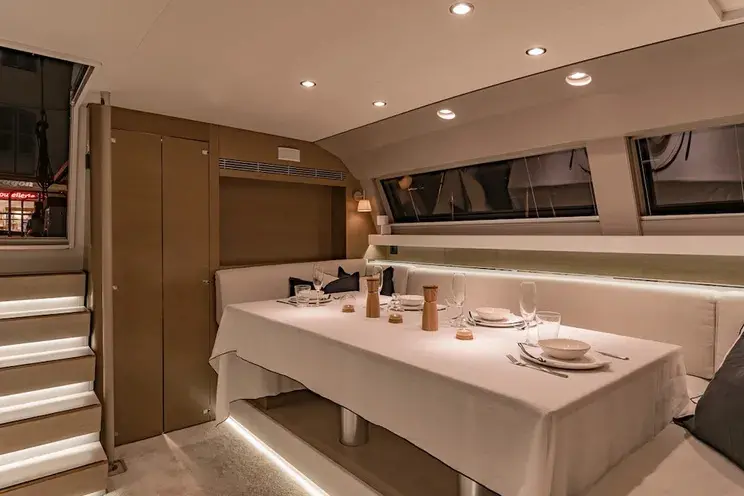 Guests on Neyina enjoy exquisite meals prepared by the onboard chef, featuring local Mediterranean flavors and international cuisines. The dining experience is perfectly complemented by the scenic views offered by the surrounding sea.