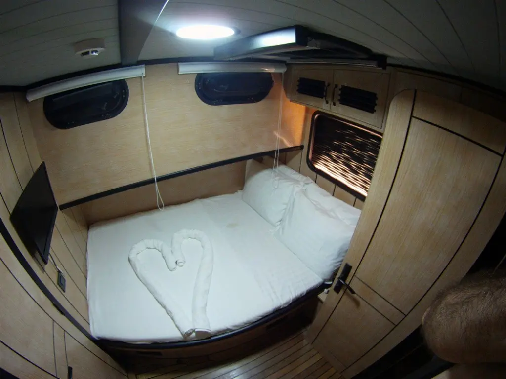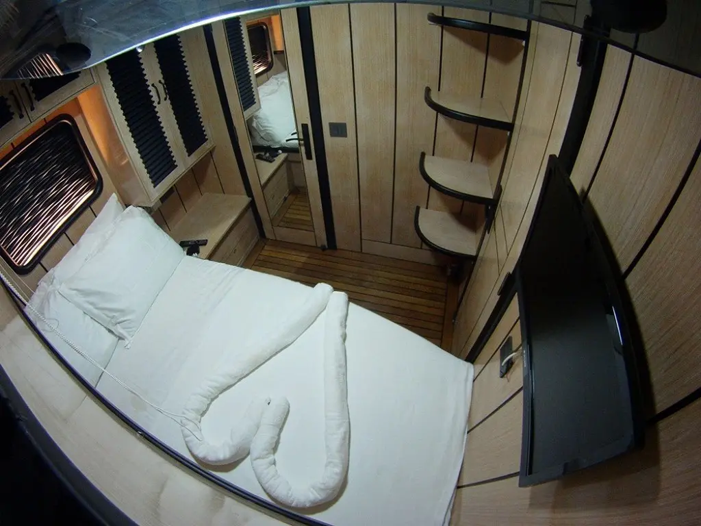 Nostalgia offers three elegantly designed cabins: one master and two doubles. Each cabin is equipped with en-suite facilities, ensuring privacy and convenience for up to six guests. All cabins are air-conditioned and feature modern amenities, including TVs and a music system, enhancing the comfort and entertainment of guests throughout their stay.