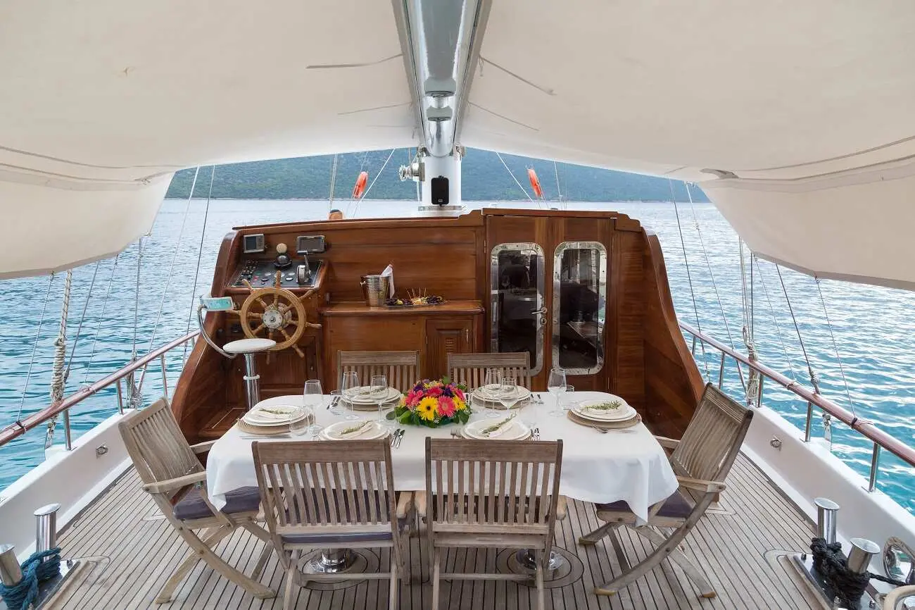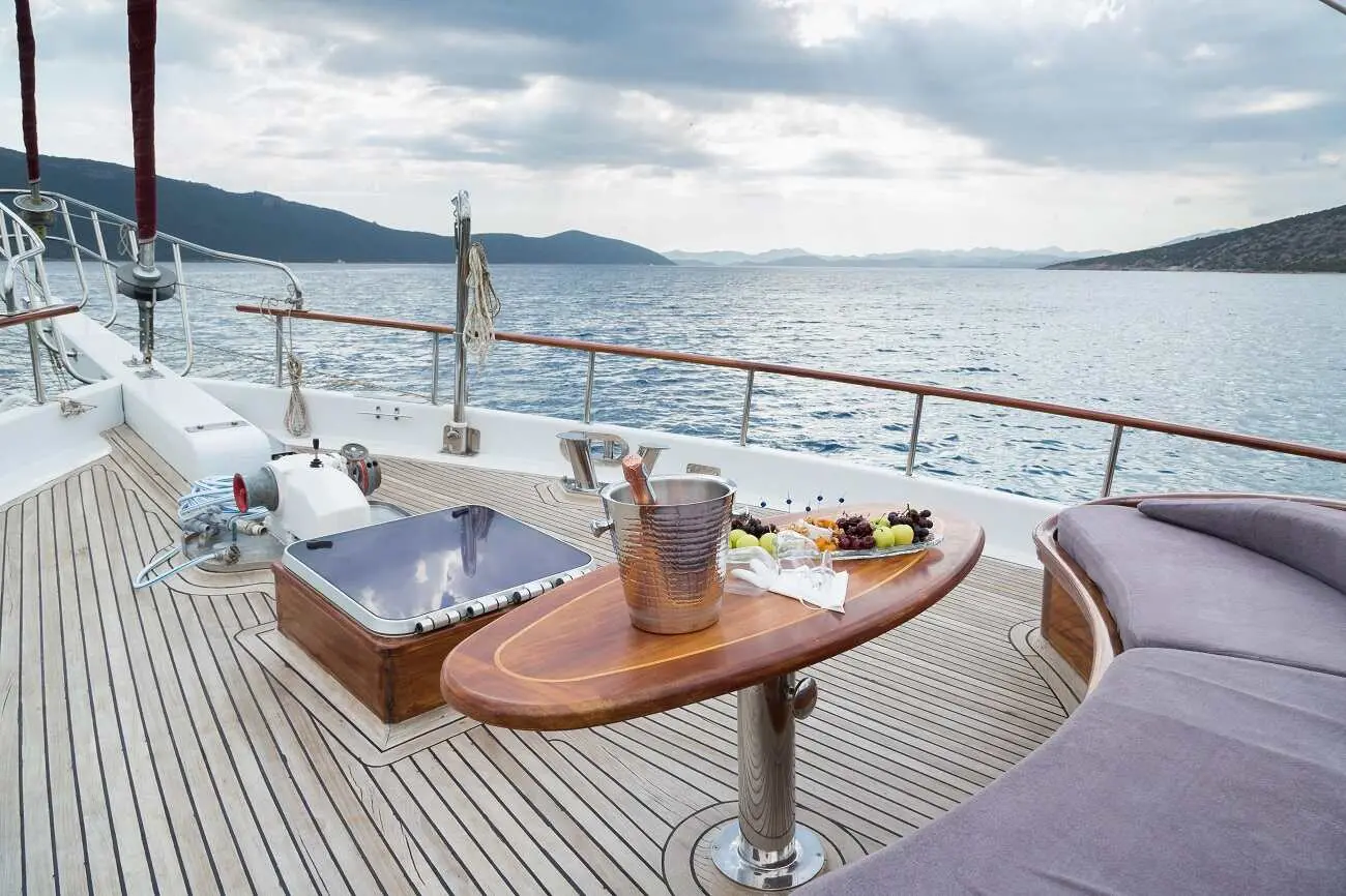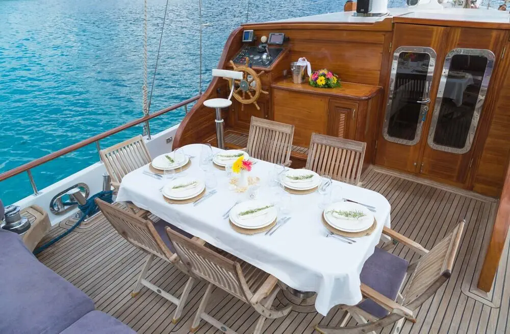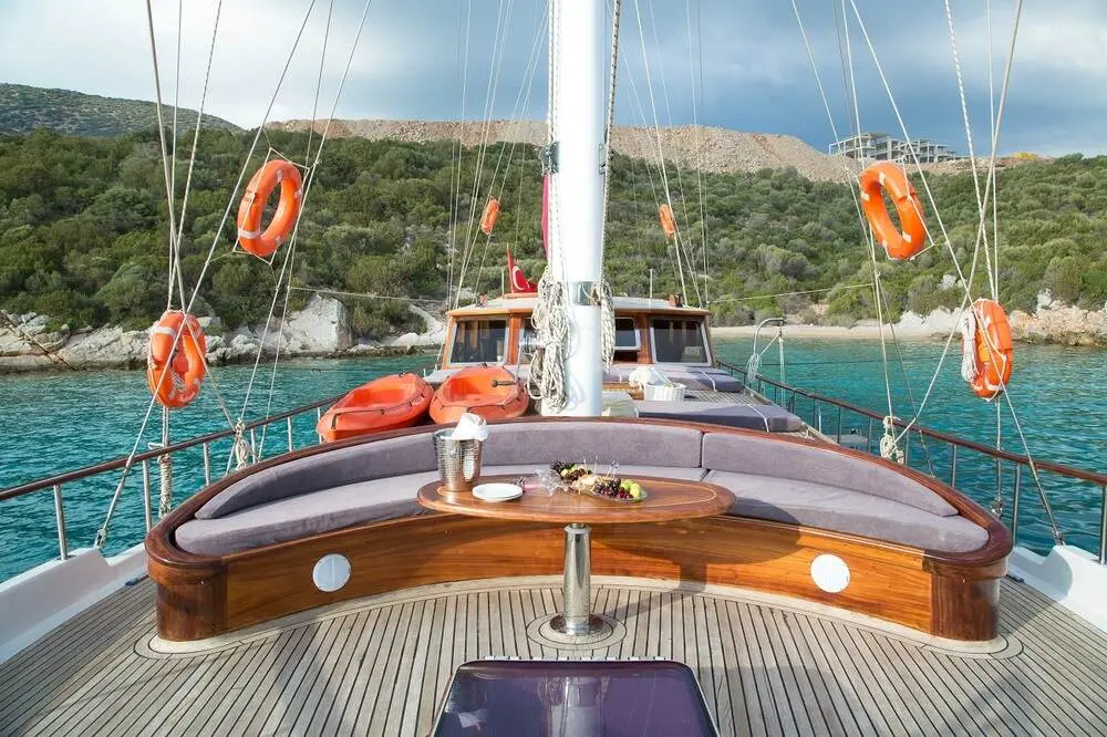 Equipped with modern navigation tools such as radar, VHF radio, GPS, and depth sounder, Primadonna is prepared for safe and efficient voyages along the Turkish coast. The yacht adheres to strict safety protocols, with all necessary safety equipment meticulously maintained and regularly inspected to ensure guest safety at all times.