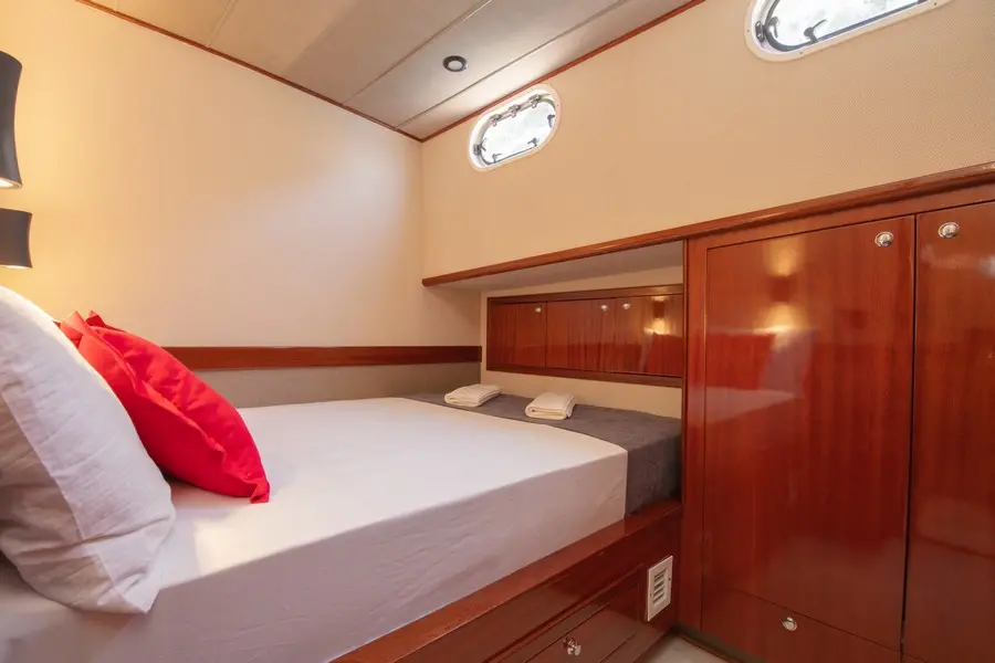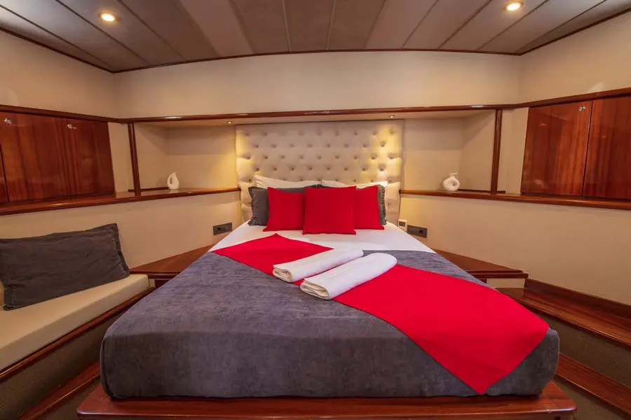 Onboard, you'll find accommodations designed with luxury and comfort in mind. A dedicated and professional three-member crew is onboard to ensure every aspect of your journey is seamless. From expert navigation to gourmet dining experiences, the crew tailors their services to exceed your expectations.