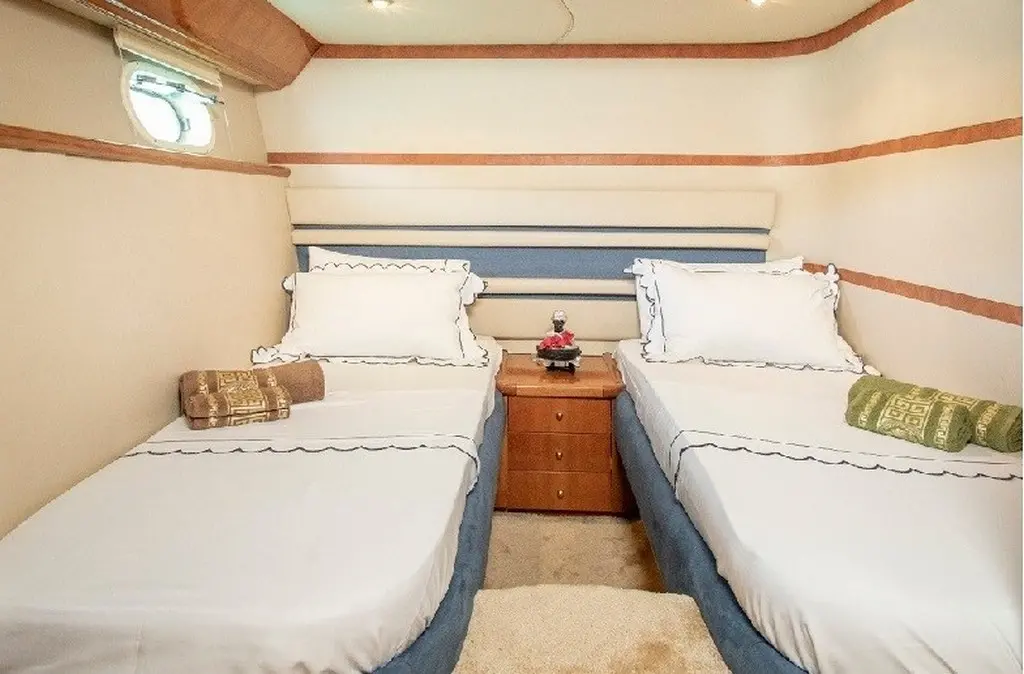 The yacht comfortably accommodates up to 6 guests in its well-appointed cabins, comprising two master suites and one twin cabin, each featuring en-suite bathrooms and individual air conditioning controls. Each cabin on the ZL-06 is a haven of comfort, designed with luxurious bedding, ample storage space, and modern entertainment systems, providing a private retreat for relaxation.