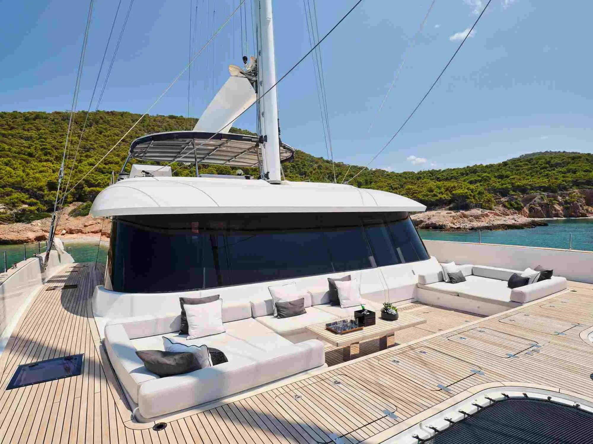 Set sail in ultimate luxury aboard the Sunreef 80 Catamaran, Above & Beyond, a floating paradise that combines sophistication, comfort, and adventure. Based in Athens and designed for the discerning traveler, this 24-meter masterpiece offers unmatched performance and style, perfect for exploring the Mediterranean.