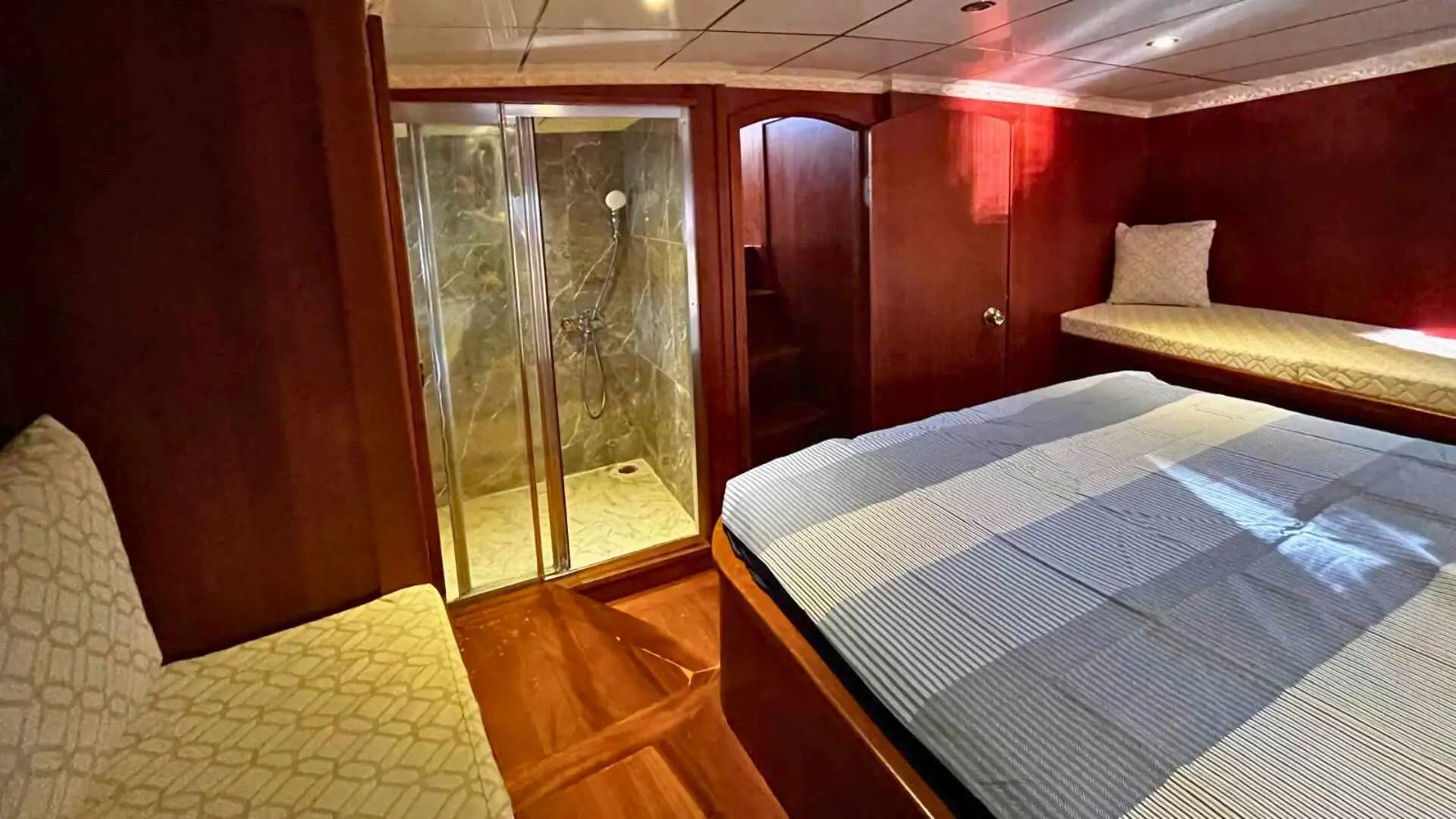 Gulet Ahmet Ertürk offers cozy accommodations for up to 6 guests in four tastefully designed cabins. The Ahmet Ertürk provides a range of amenities to enhance your sailing experience.