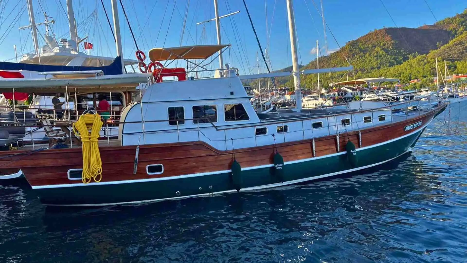 The Gulet Ahmet Ertürk is a classic Turkish motor sailer, designed for those who seek a serene and traditional sailing experience on the beautiful Aegean coast. With a history dating back to 1989 and a complete refit in 2024, this 19.8-meter gulet combines vintage charm with updated amenities for a comfortable and memorable voyage. Based in the lively port of Marmaris, Turkey, Gulet Ahmet Ertürk is a perfect choice for travelers looking to explore the coast in timeless style.
